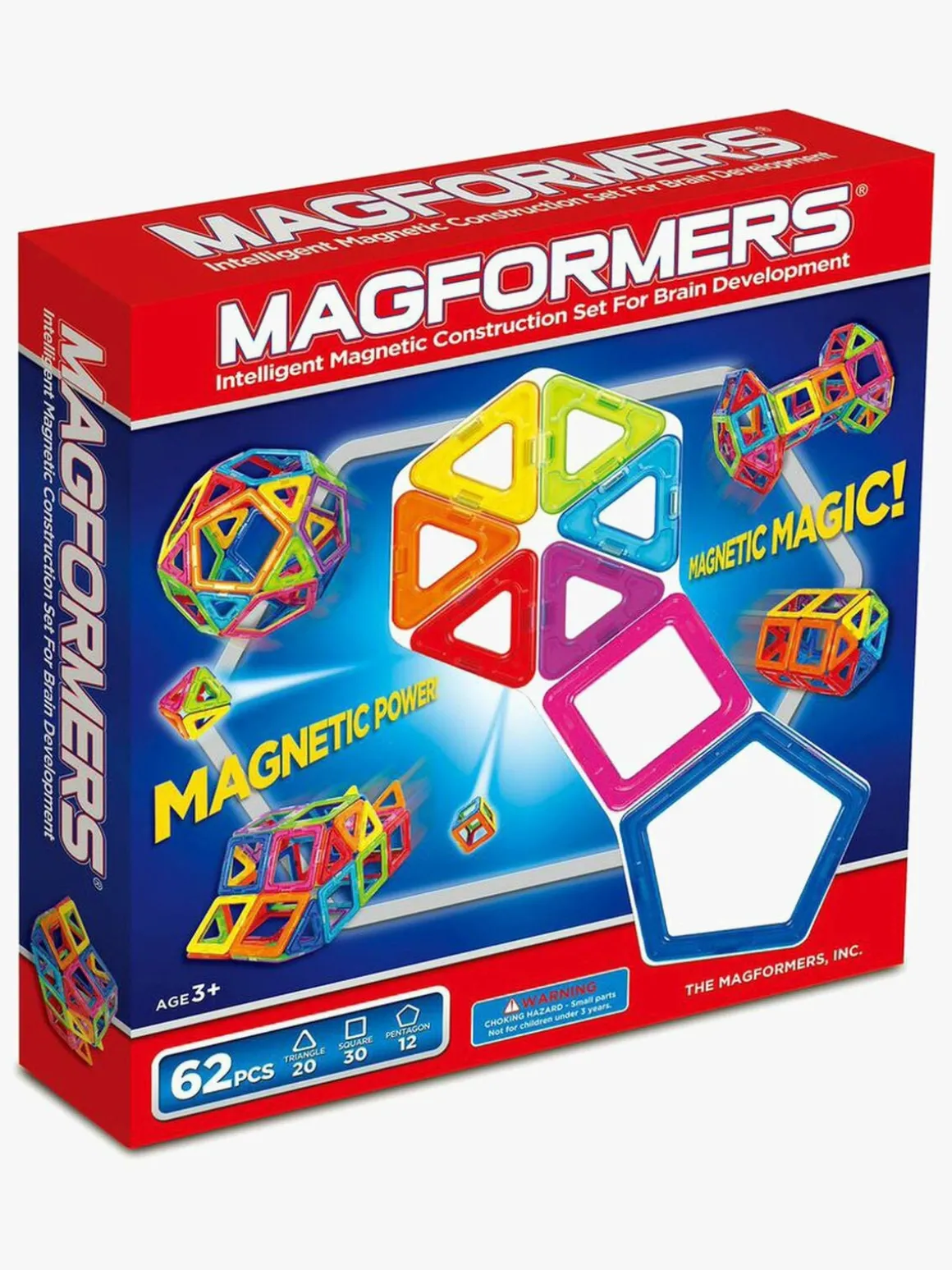 Byg sjove konstruktioner med sættets 62 dele, som består af 20 trekanter, 30 firkanter og 12 sekskanter.