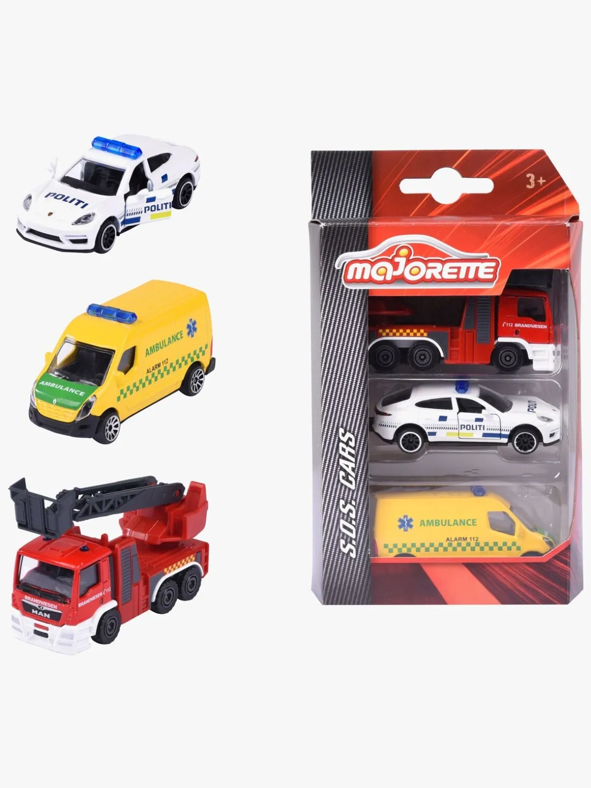 – Indeholder: 1 ambulance, 1 politibil, 1 brandbil.