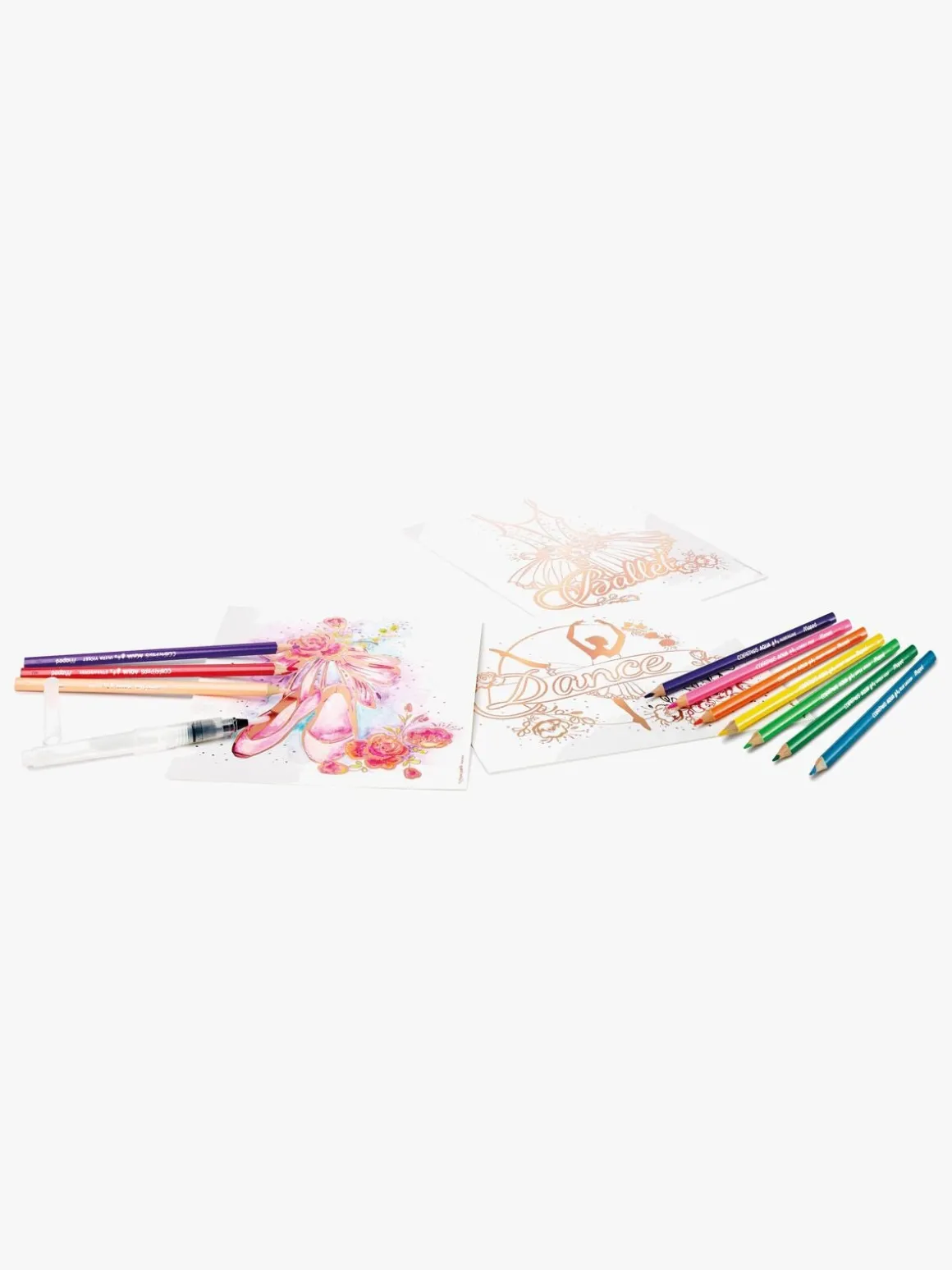 – Indeholder: 3 illustrationer, 10 farveblyanter, 1 pensel.