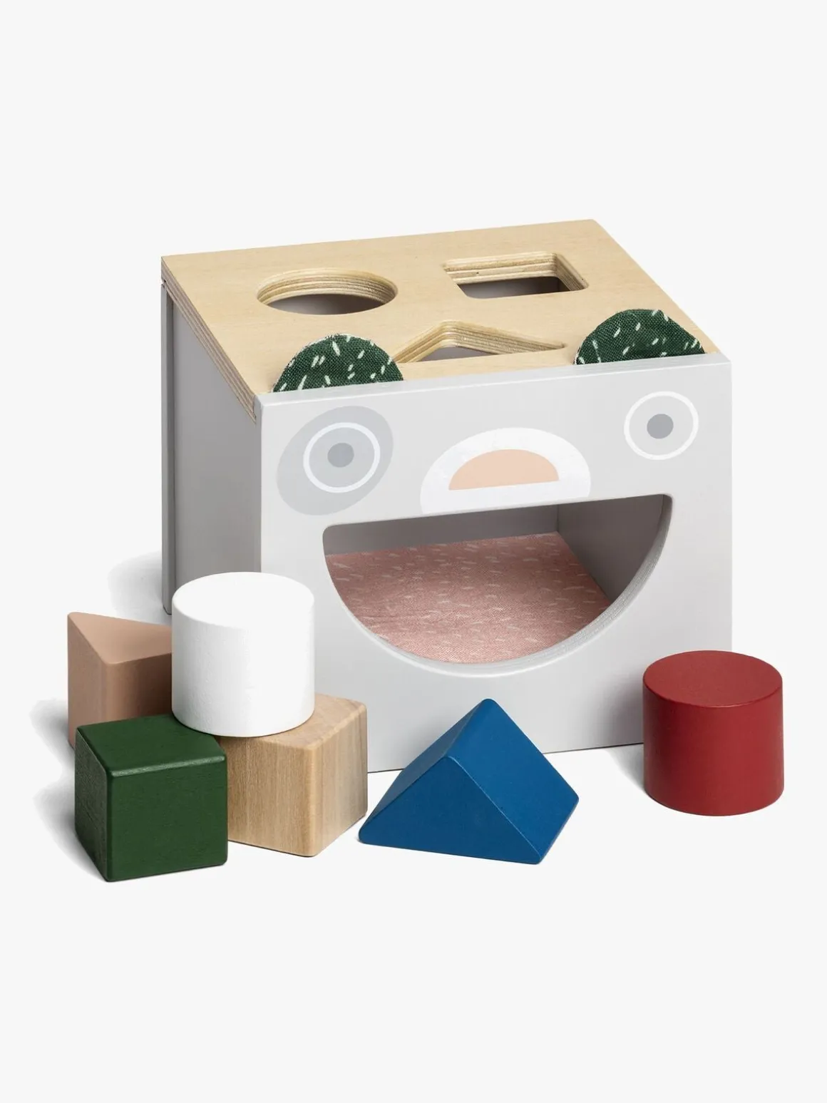 En puttekasse er ikke bare sjov at lege med, men udvikler desuden dit barns motorik og sanser. Til kassen medfølger seks træklodser i tre forskellige former.