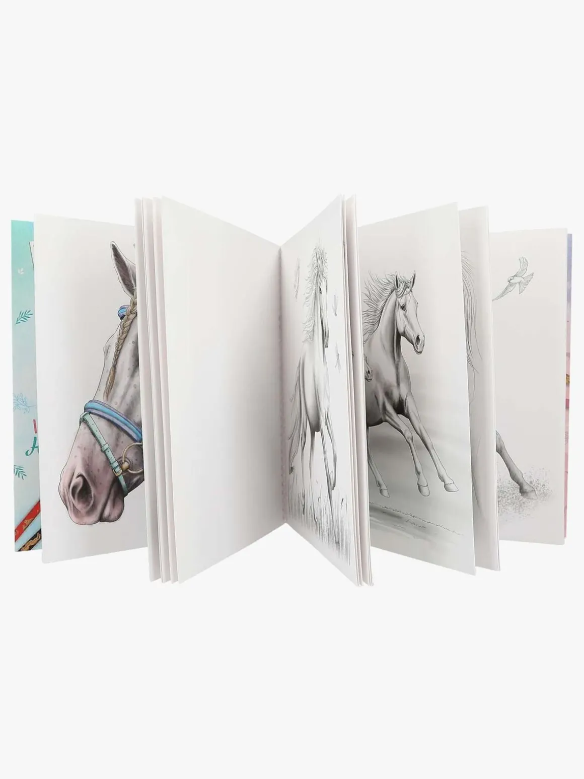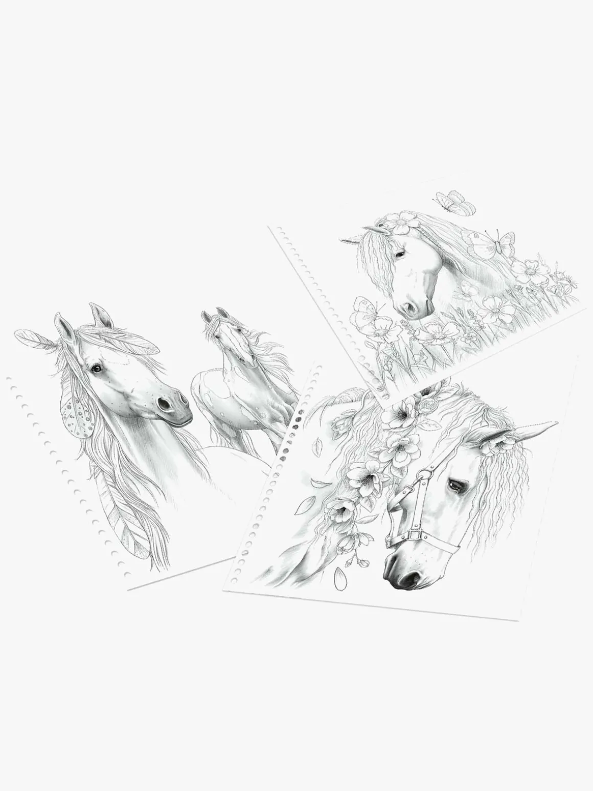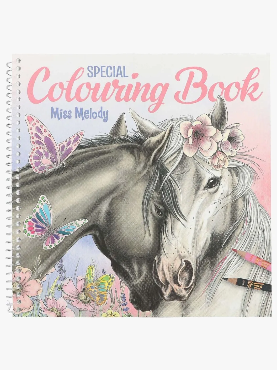 Malebog fra Miss Melody med smukke hestemotiver, som man kan farvelægge. Perfekt til kreative stunder.