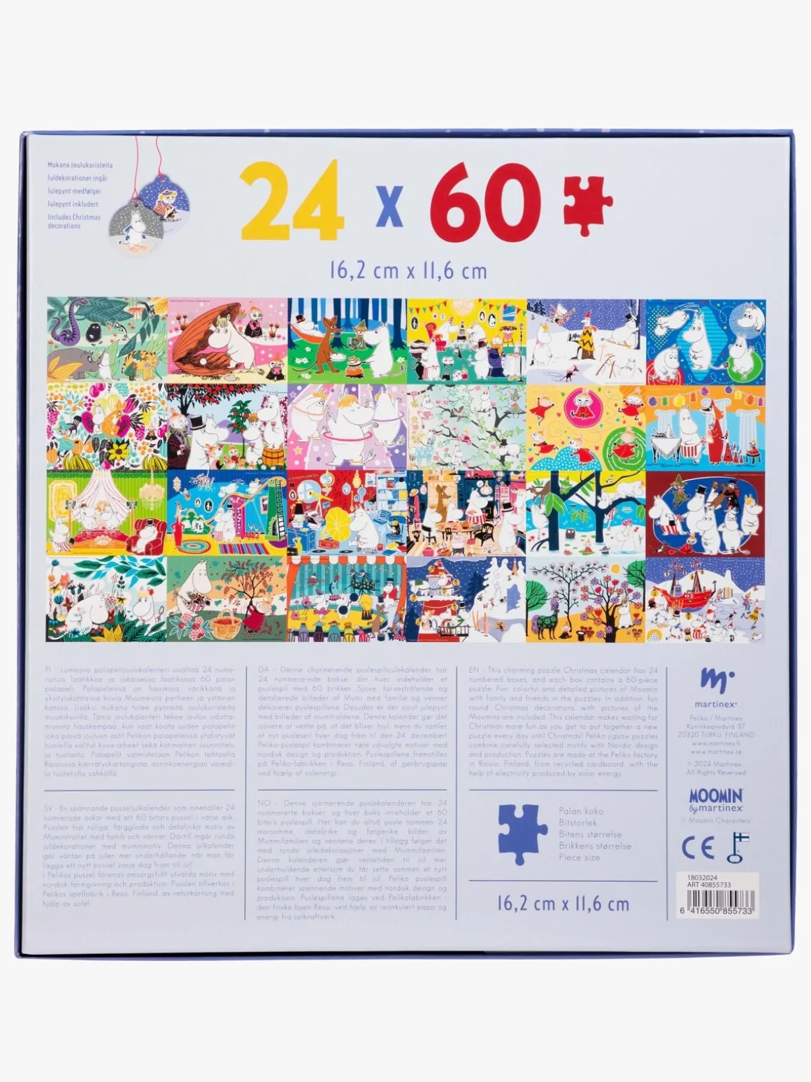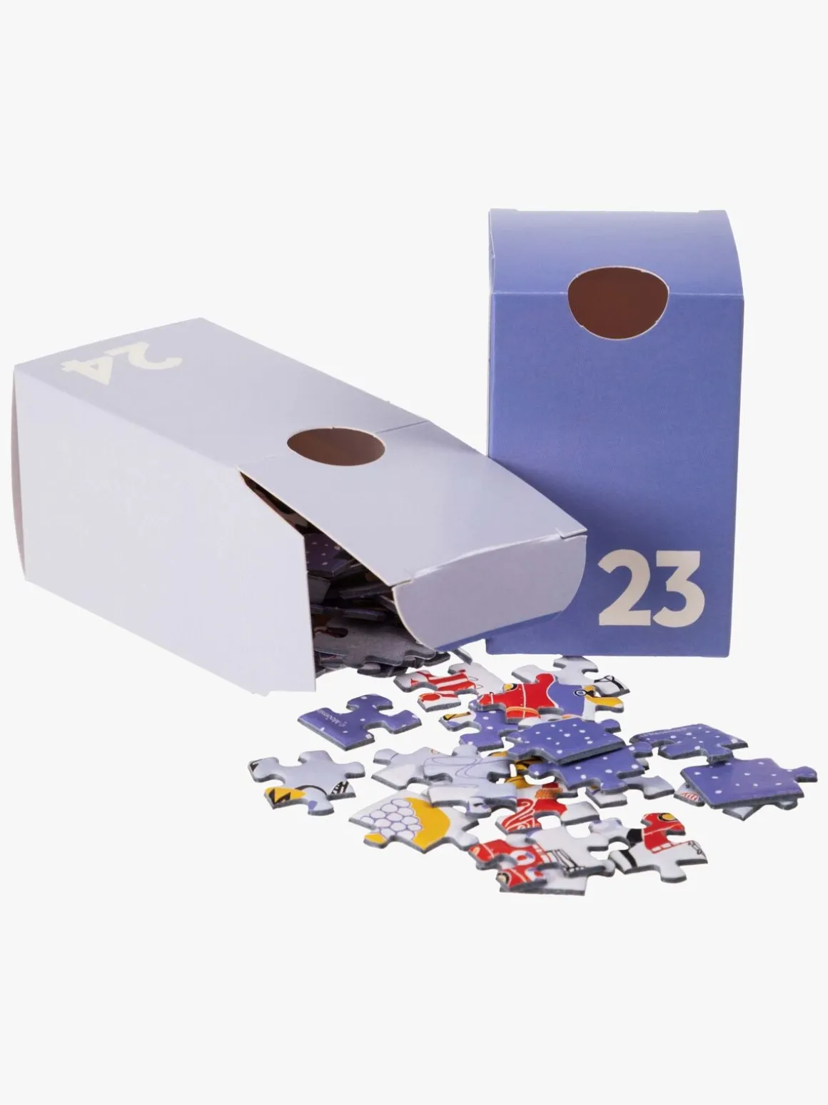 – 24 nummerede æsker, der hver især indeholder et puslespil med 60 brikker.