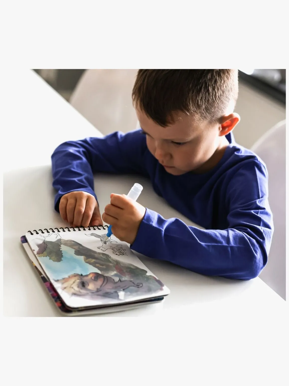 – Fyld pennen med vand, mal på siderne i bogen og se motiverne dukke frem på magisk vis.