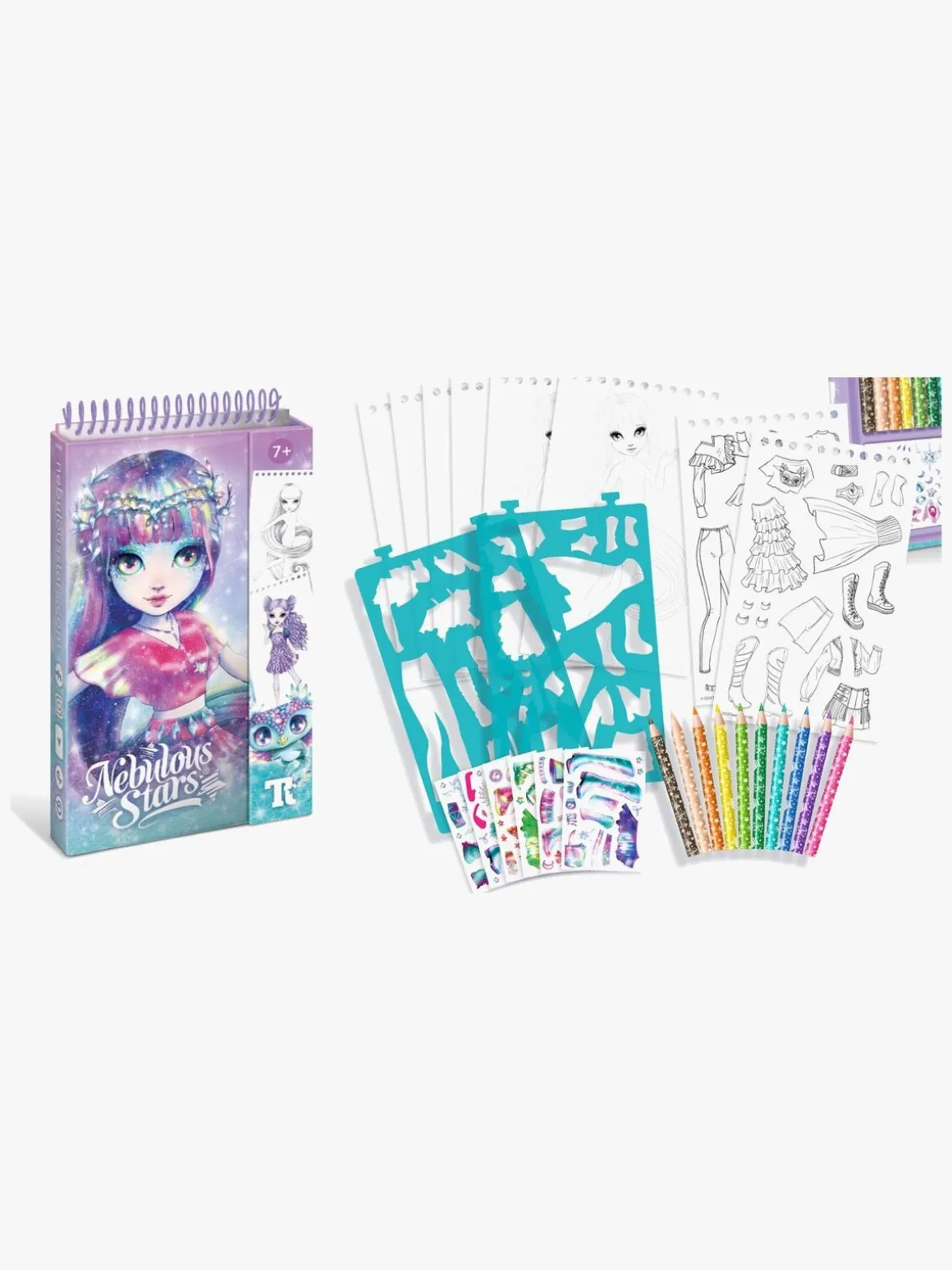 – Indeholder: 20 skitsesider, 28 stenciler, 100 klistermærker, 10 farveblyanter, 1 instruktionsbog.
