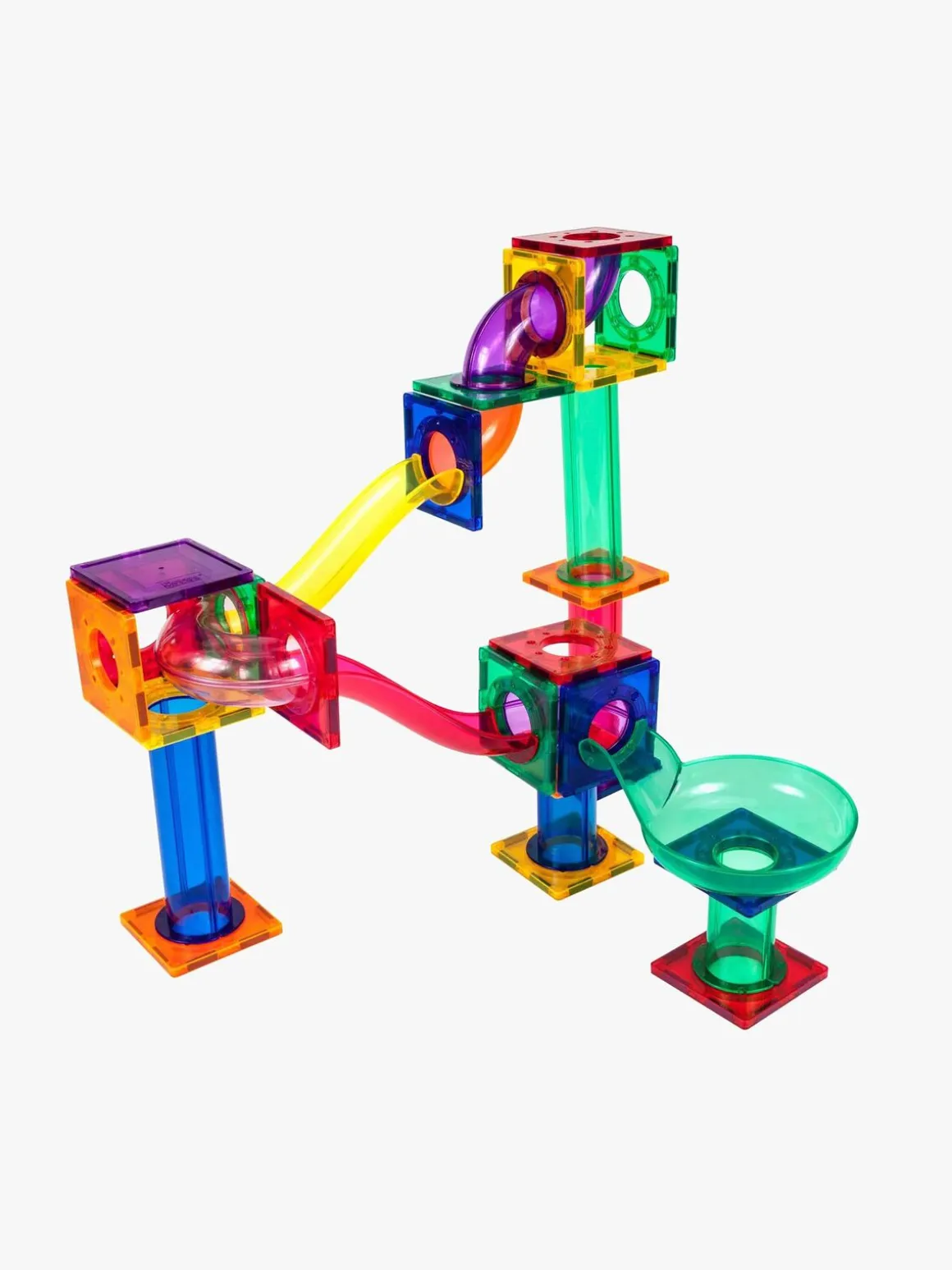 – Indeholder: 8 kvartsving, 21 firkantede baneplader, 12 lige rør, 2 U-svingrør, 1 centrifugaltragt, 2 hældninger, 3 kugler, 1 kvadrat.