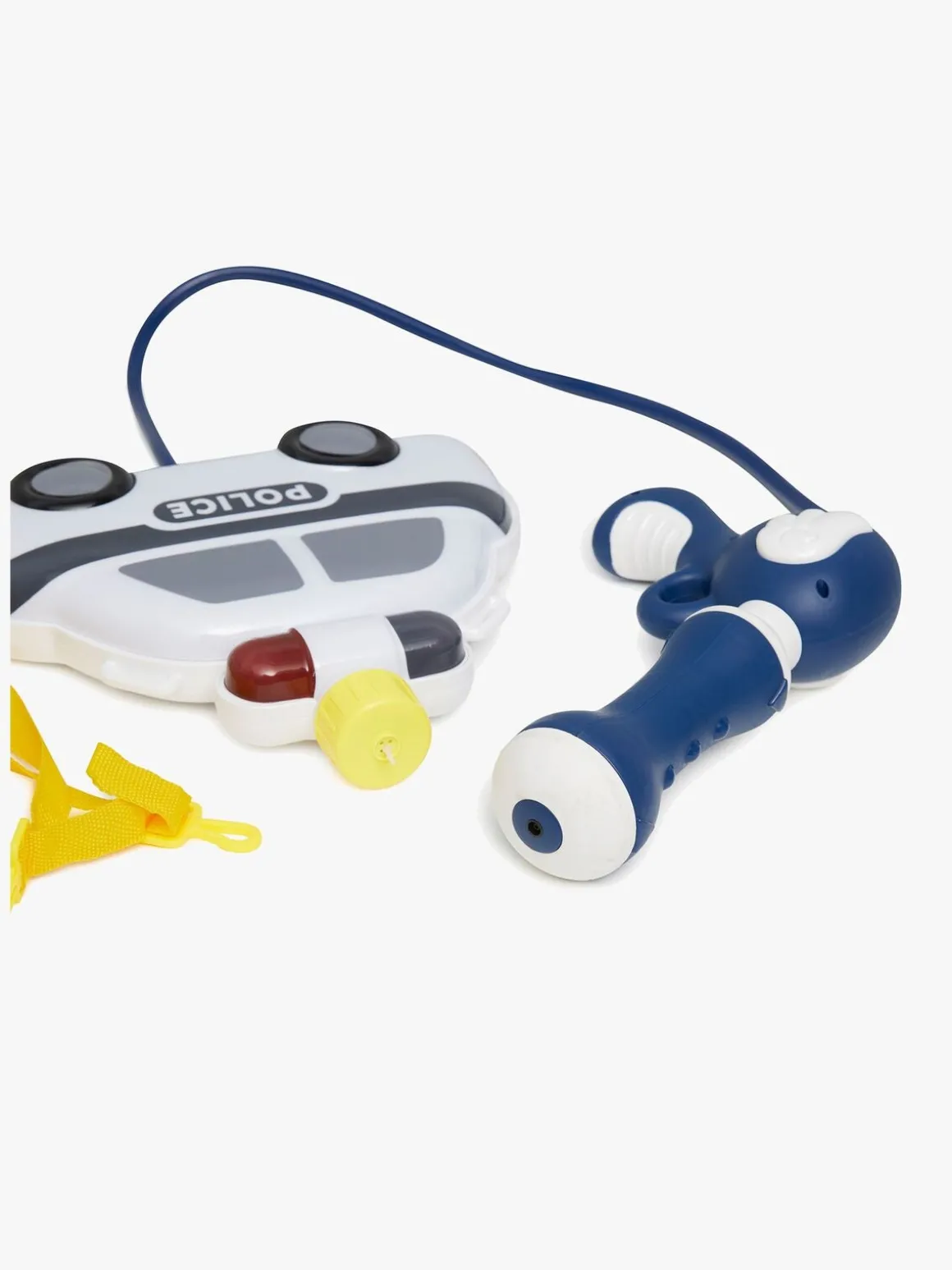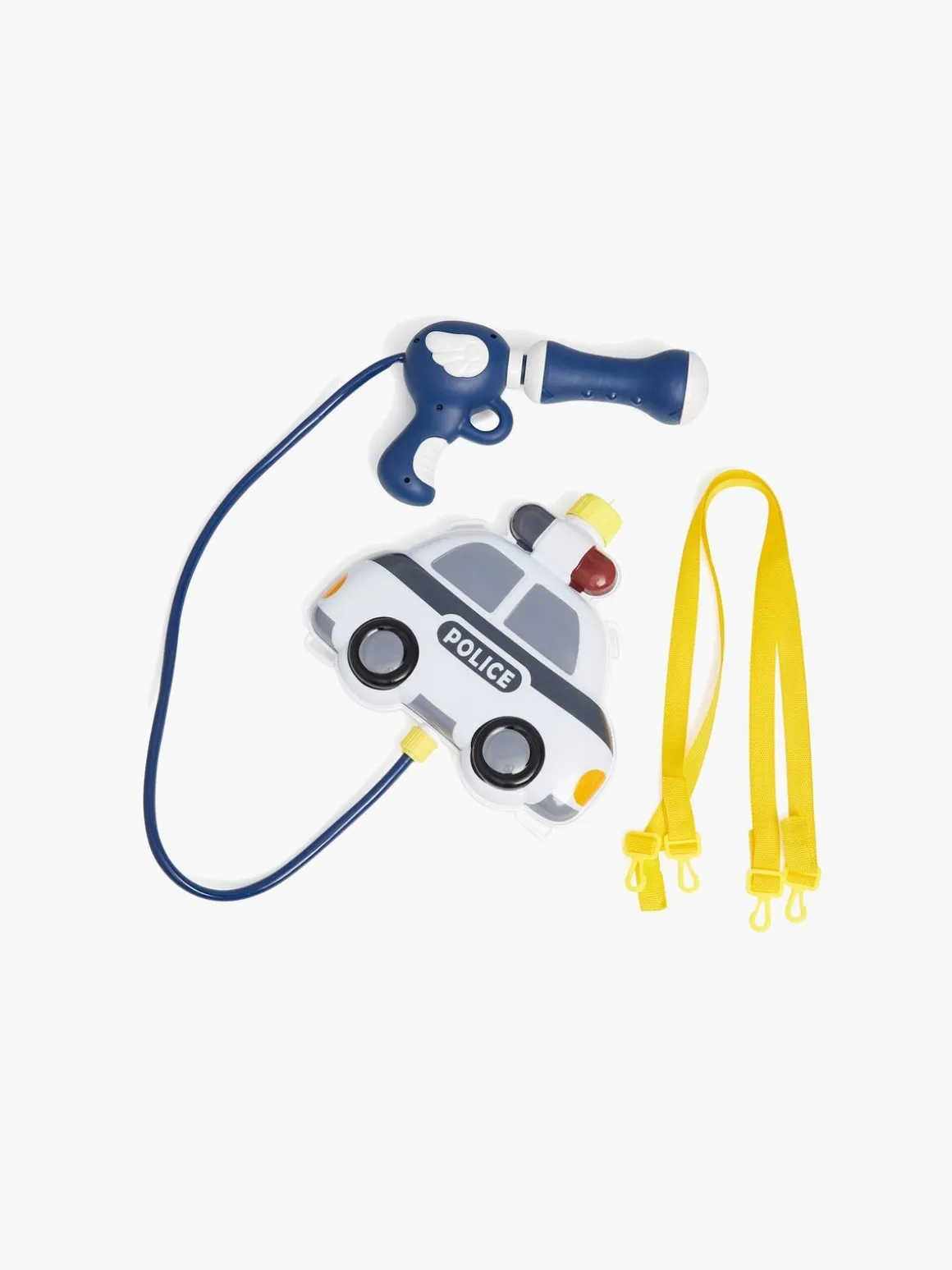 – Indeholder en vandslange med et mundstykke samt en rygsæk, der er formet som en politibil.