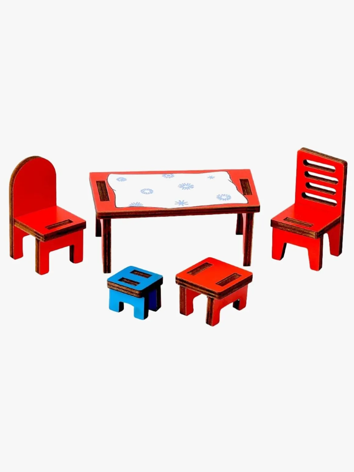 – Indeholder: 1 bord, 2 stole, 2 skamler.
