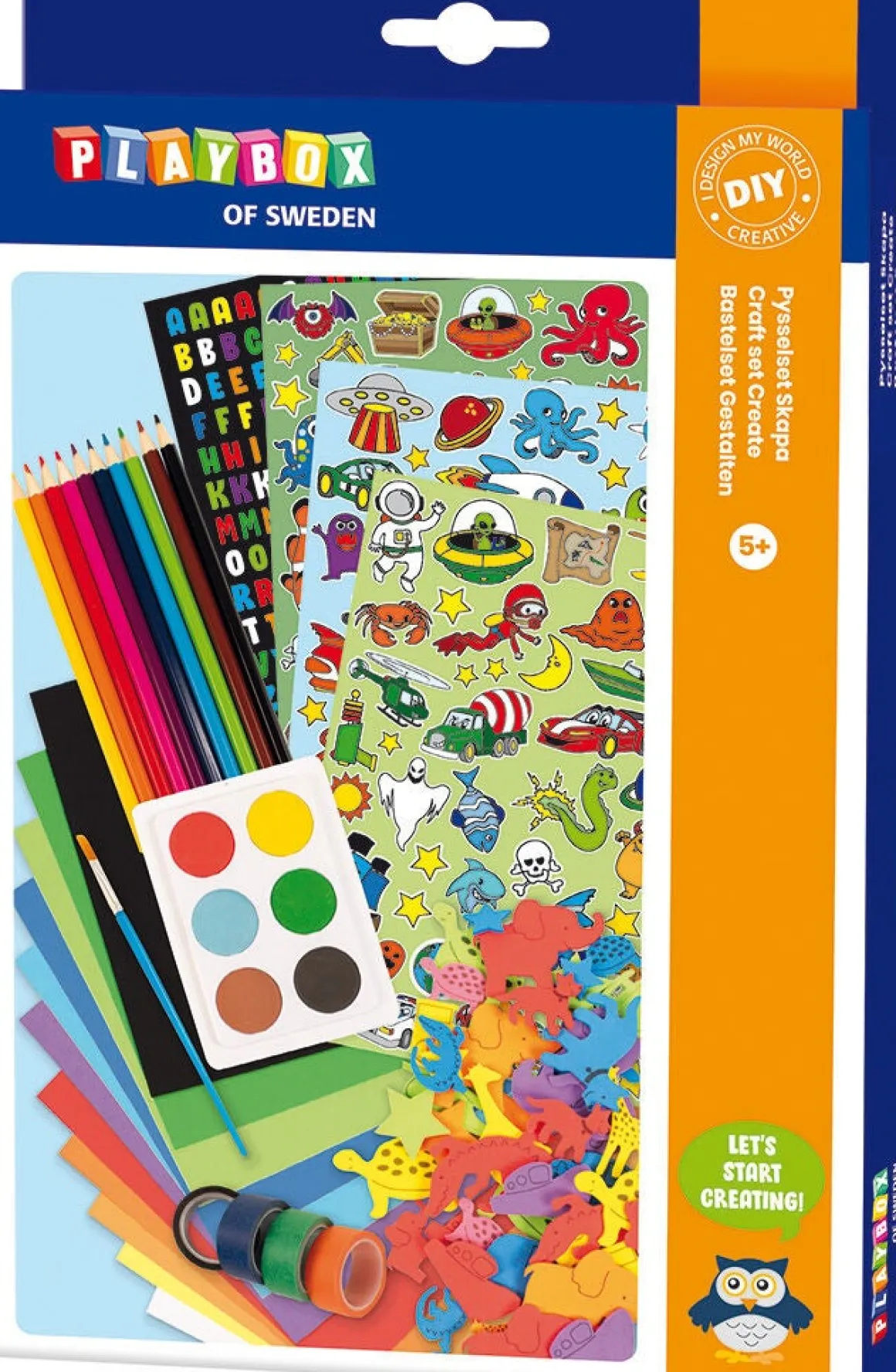 – Indeholder: 4 klistermærkeark, 4 taperuller, 20 fremstillet af papir, 10 farvepenne, 50 figurer, 1 farvepalet, 1 pensel.