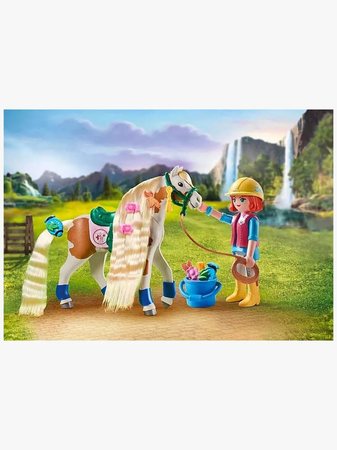 – Indeholder: 1 Playmobil-figur, 1 hest, 1 bølgejern og andet spændende tilbehør.