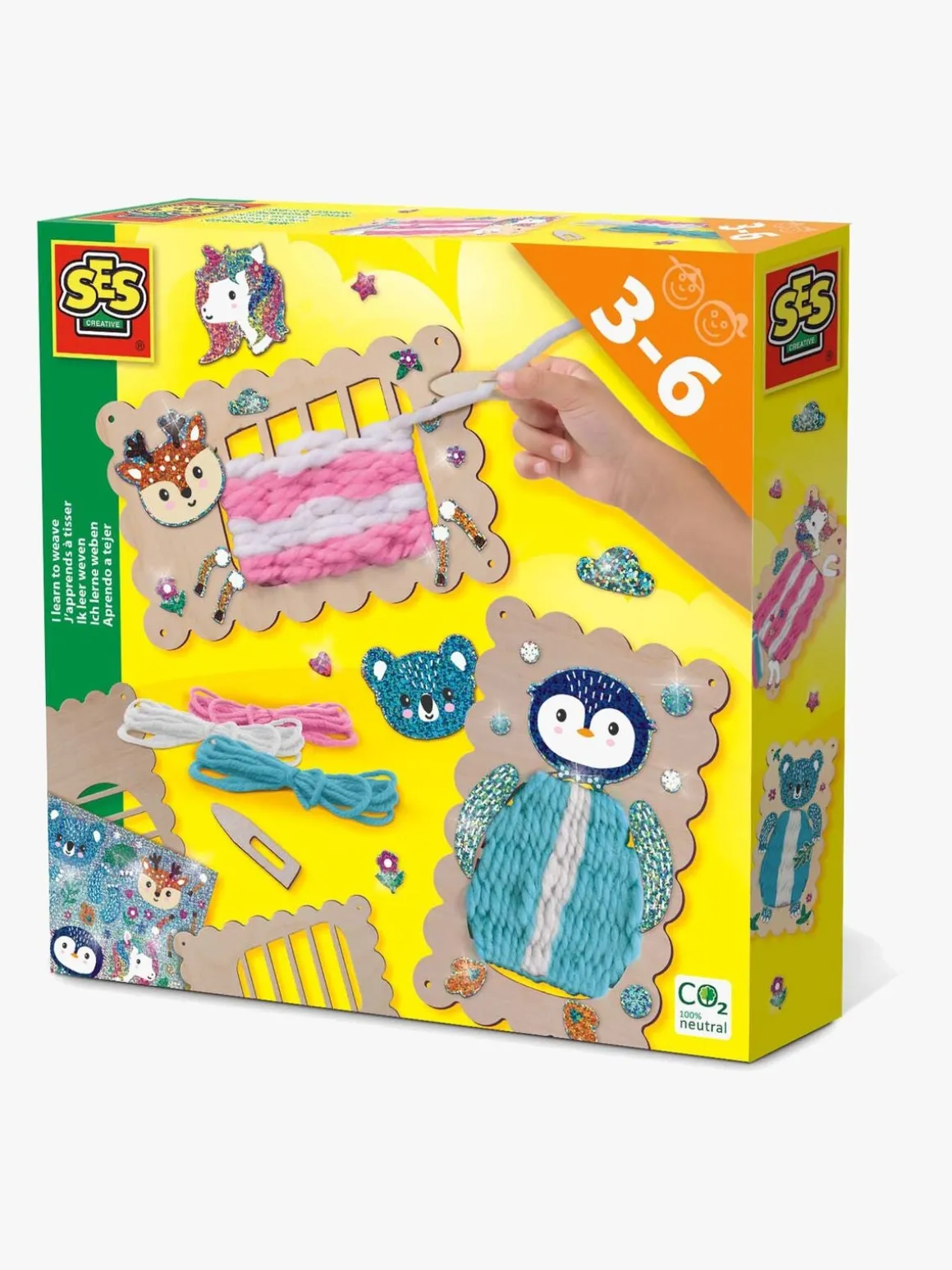 – Indeholder: 2 vævestolsrammer, 2 vævenåle, 3 forskelligfarvede tråde, 1 klistermærkesæt, 1 brugsvejledning.
