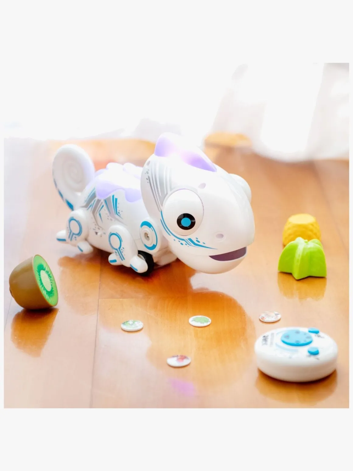 Når den søde kamæleon går, gynger halen, og de store, søde øjne ruller. Trykker du på ”Catch” på fjernkontrollen, stikker den sin lange tunge du og er klar til at spise insekter!
