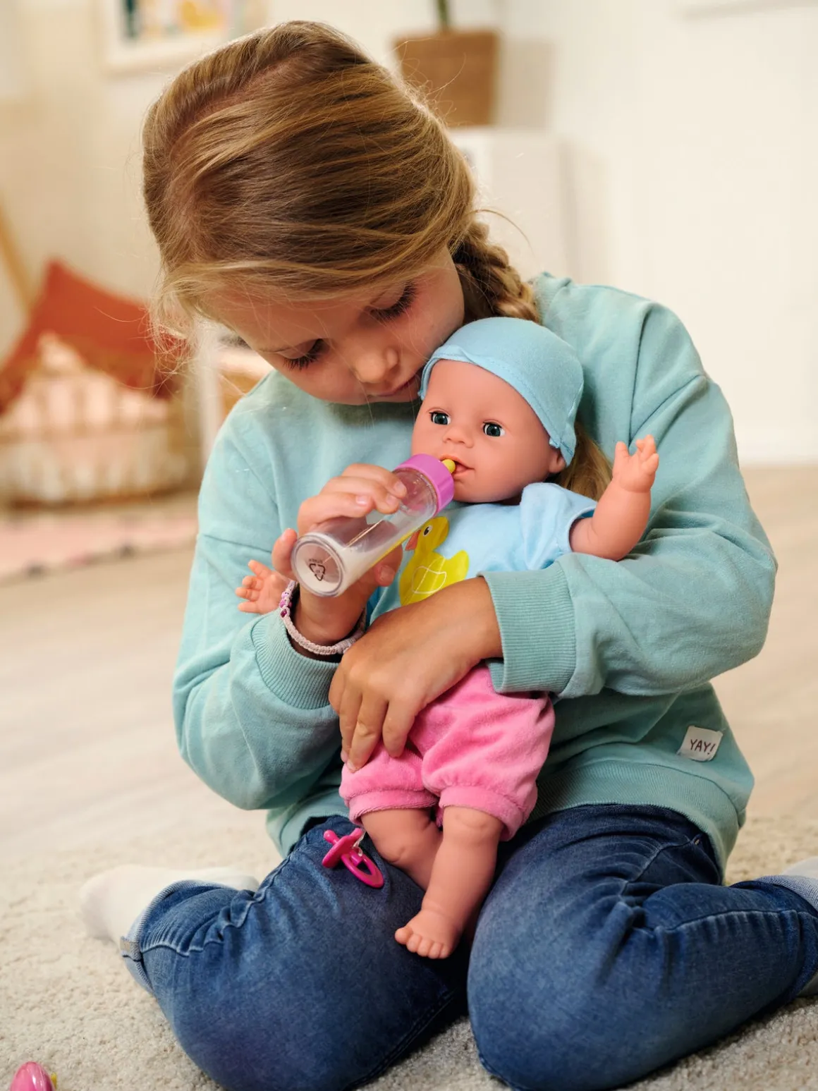– Indeholder: 1 dukke, 1 sut, 1 sutteflaske, 1 ske, 1 tallerken.