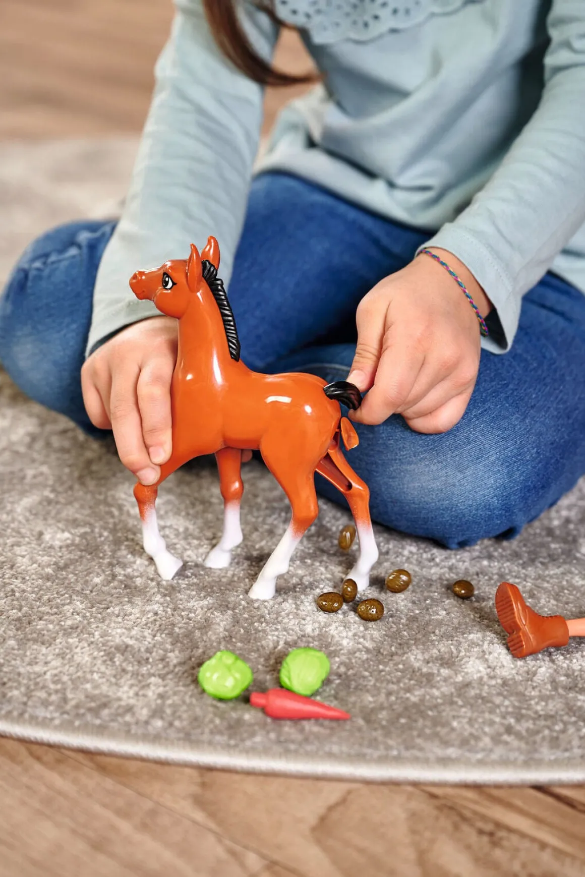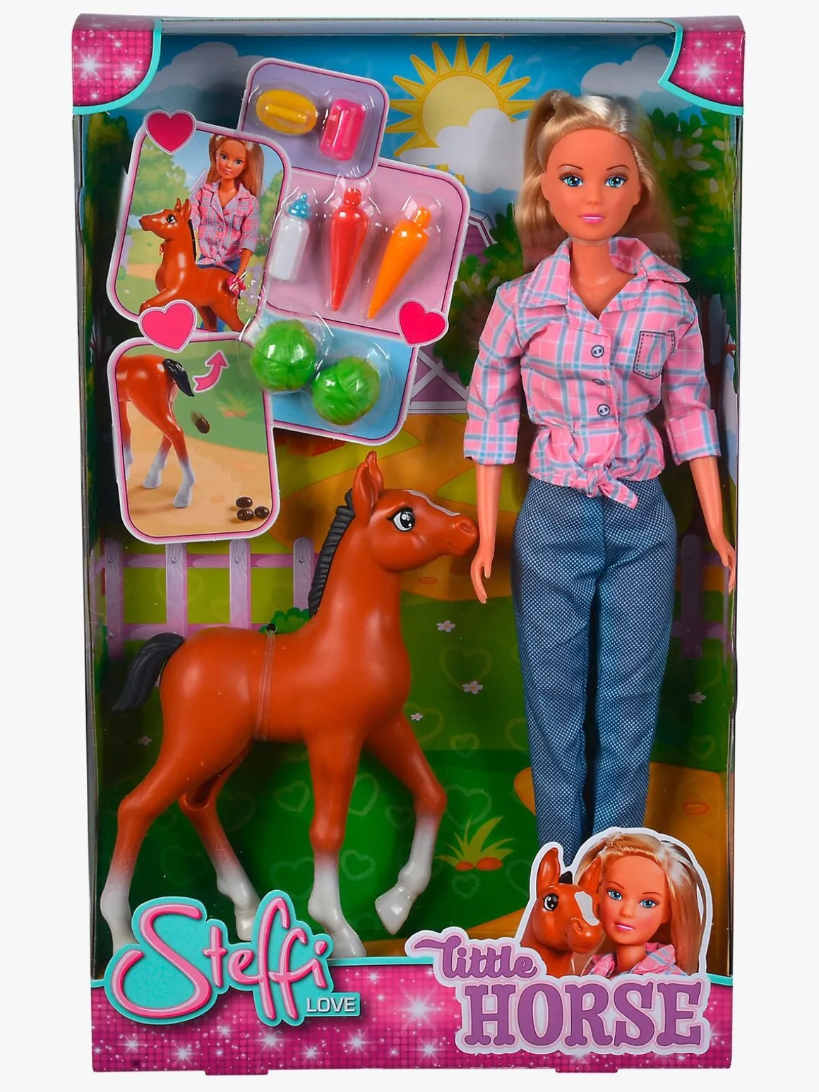 – Indeholder: 1 dukke, 1 føl, 1 sutteflaske, 2 gulerødder, 2 salathoveder, 2 striglebørster.