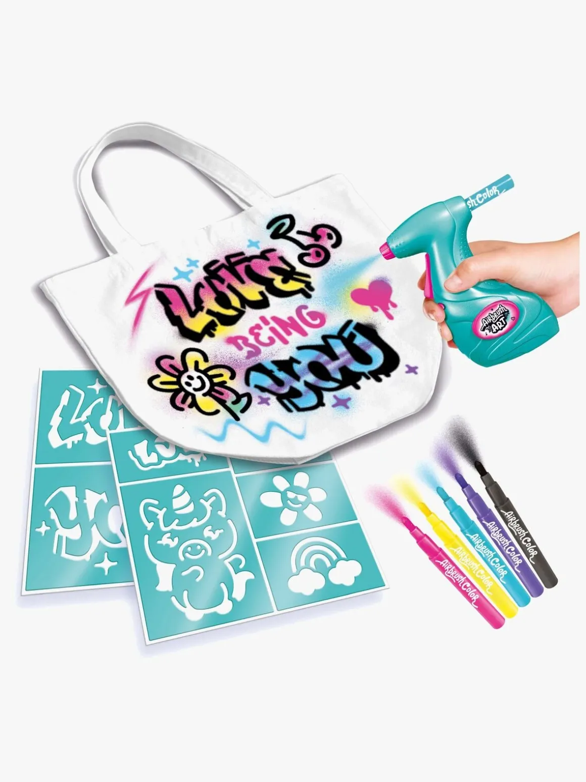 – Indeholder: 1 mulepose, 1 airbrush, 6 airbrushfarver, 3 stencilskabeloner, 1 brugsvejledning.