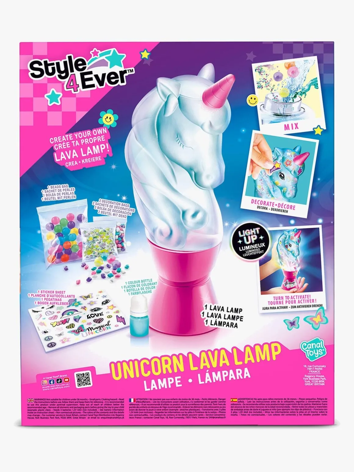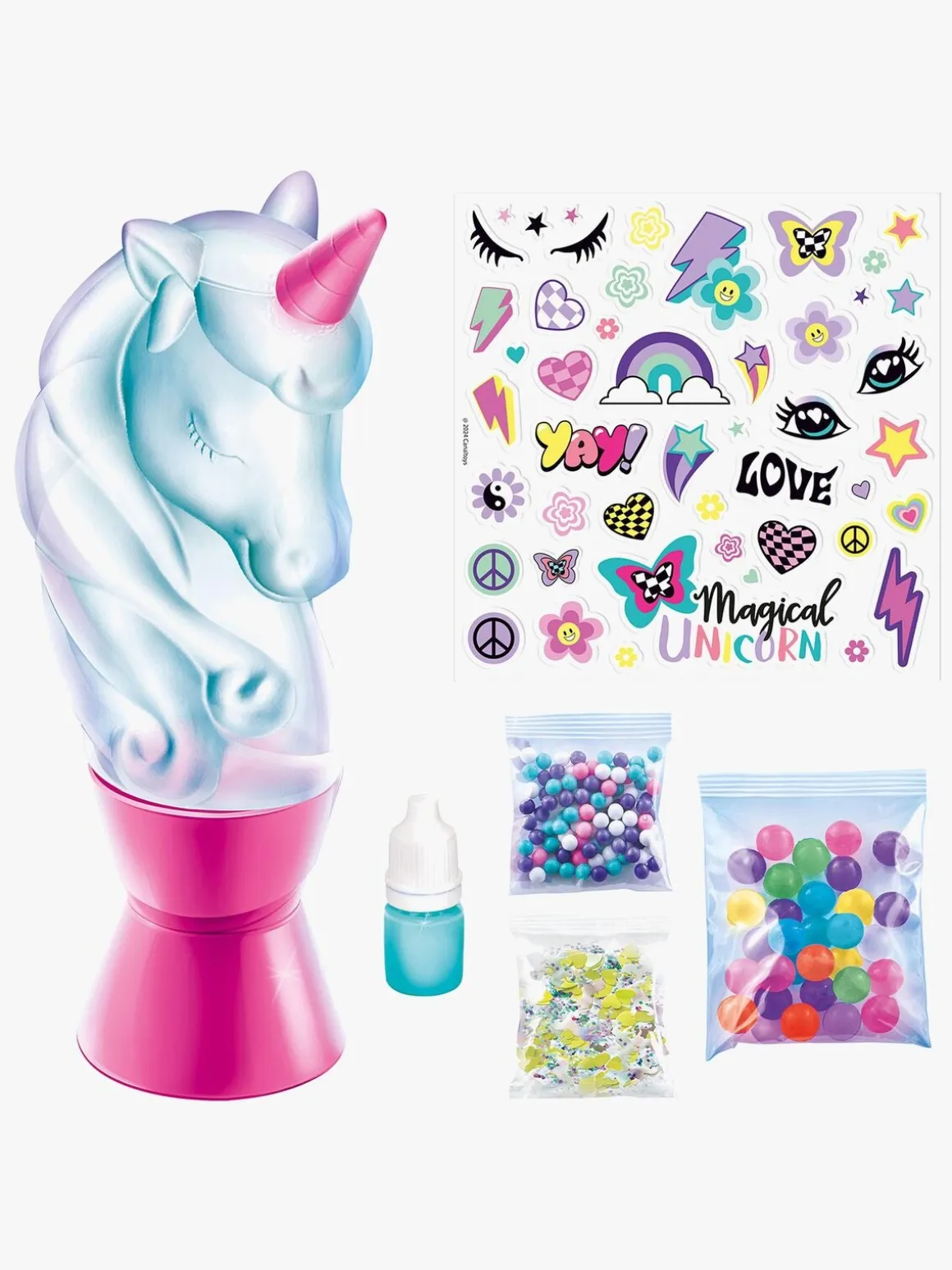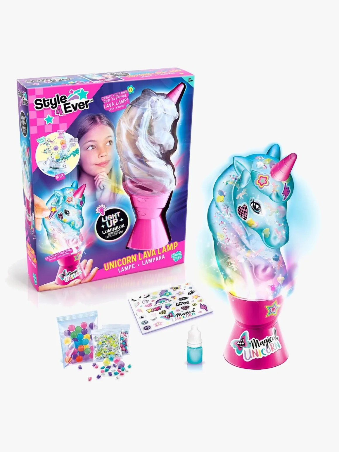 – Indeholder:, 1 lavalampe, 2 poser med dekorationer, 1 klistermærkeark, 1 blækflaske, 1 pose med perler.