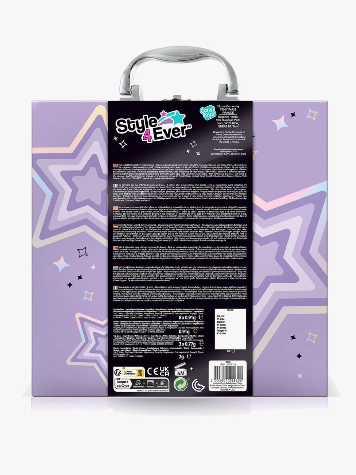 – Indeholder: 1 makeuptaske med et spejl, 15 øjenskygger, 3 blushes, 2 lipglosser, 15 læbestifter, 9 børster.