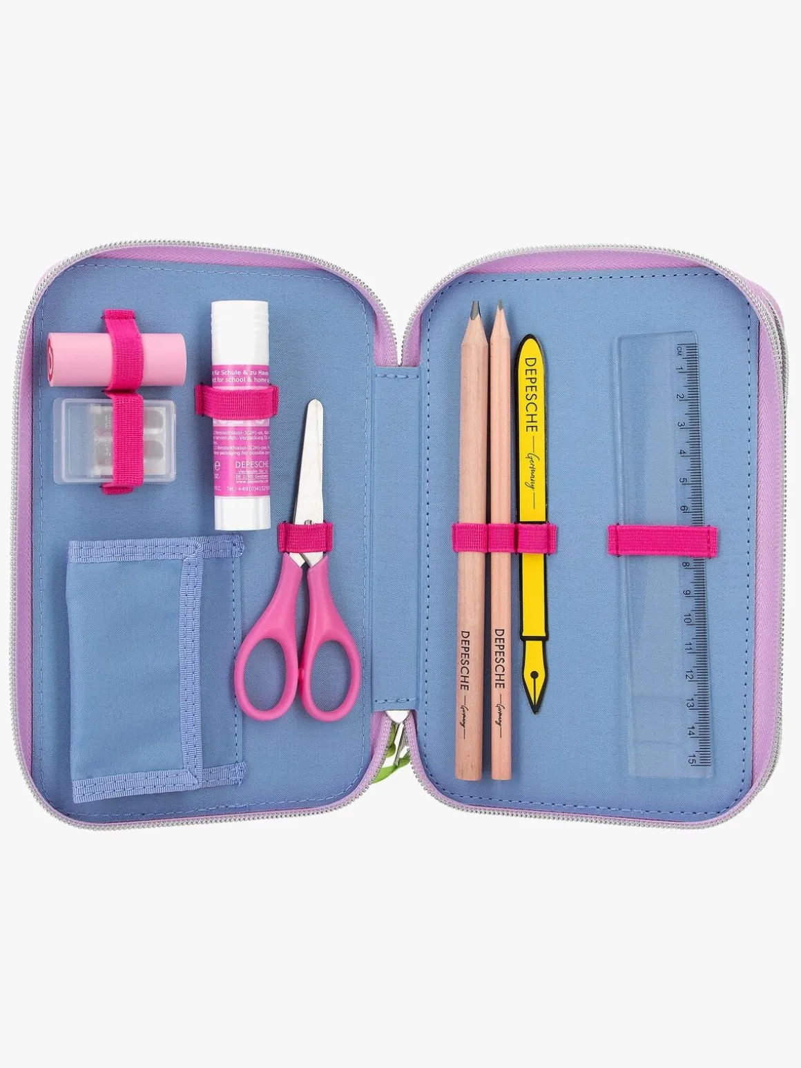 – Indeholder: 1 penalhus, 18 farveblyanter, 18 tusser, 2 blyanter, 1 saks, 1 limstift, 1 blyantspidser, 1 lineal, 1 viskelæder.
