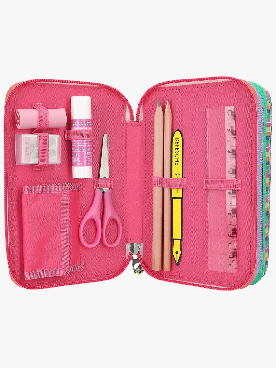 – Indeholder: 1 penalhus, 18 farveblyanter, 18 tusser, 2 blyanter, 1 saks, 1 limstift, 1 blyantspidser, 1 lineal, 1 viskelæder.