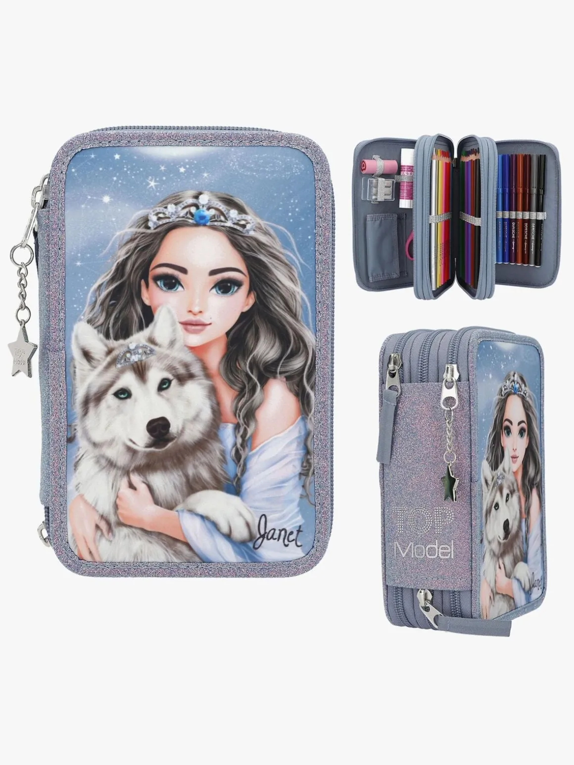 – Indeholder: 1 penalhus, 18 farveblyanter, 18 tusser, 2 blyanter, 1 saks, 1 limstift, 1 blyantspidser, 1 lineal, 1 viskelæder.