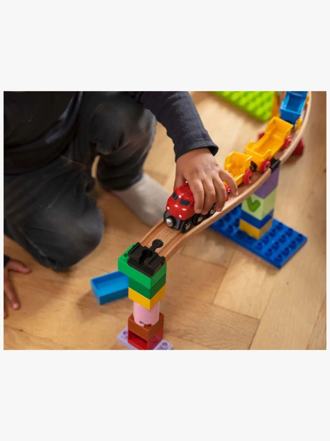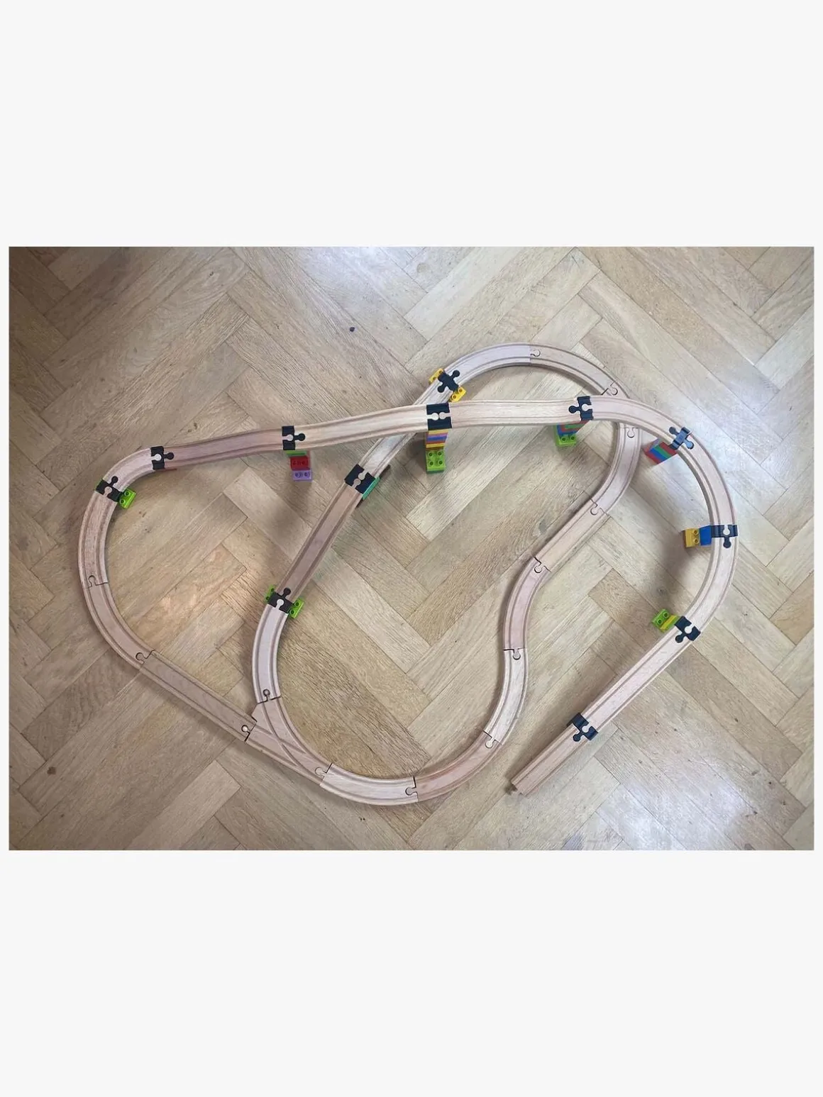– OBS: Træskinnerne og byggeklodserne medfølger ikke.
