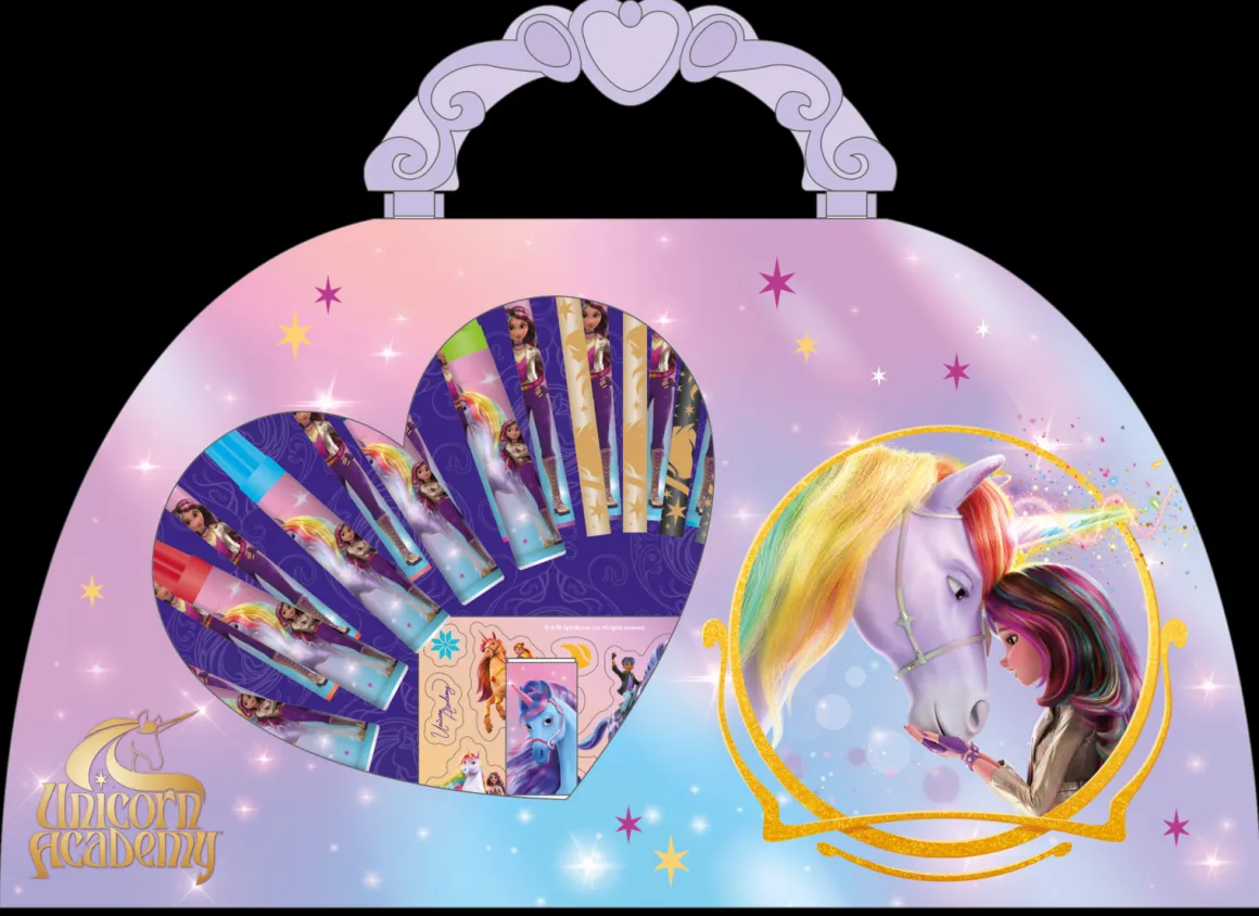 – Indeholder: 12 små farveblyanter, 6 tusser, 24 farvekridt, 1 viskelæder, 2 minipenne, 1 blyantspidser, 1 klistermærkeark, 4 plakater.