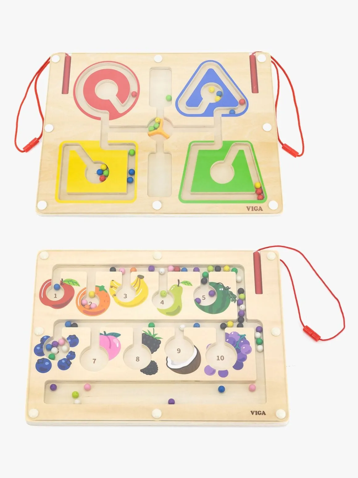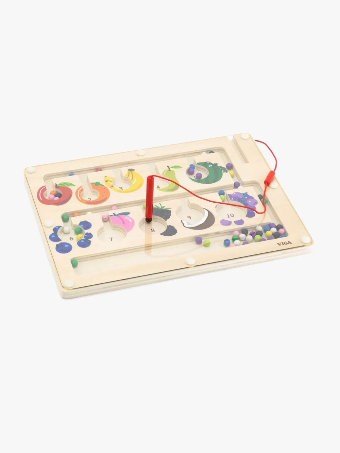 – Der medfølger en magnetisk pen og kugler i forskellige farver.