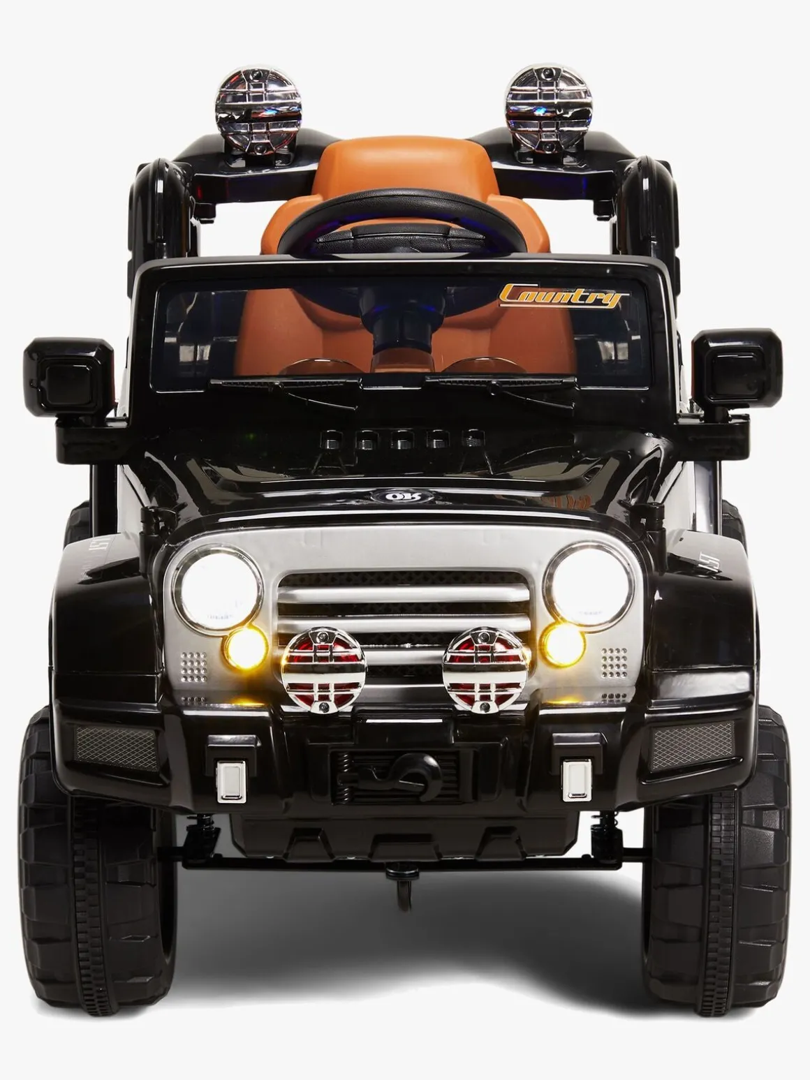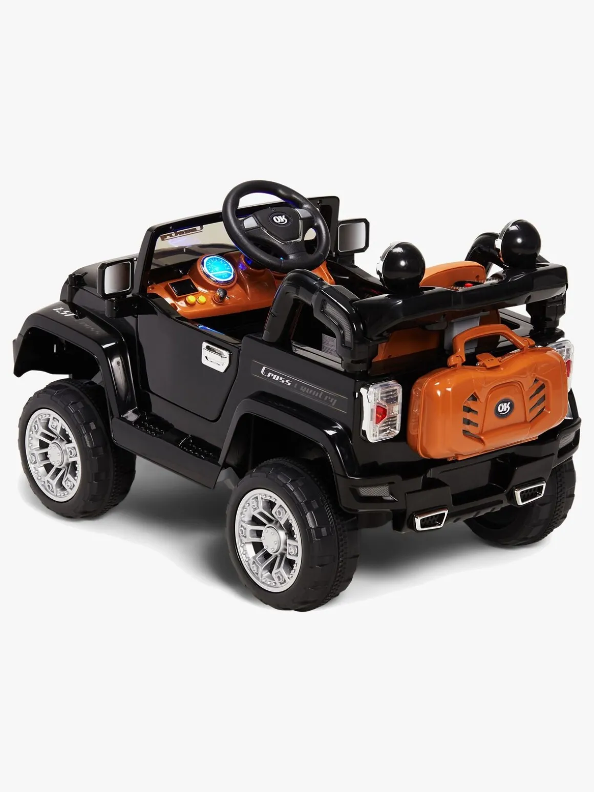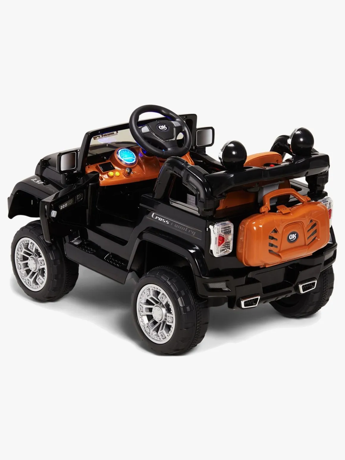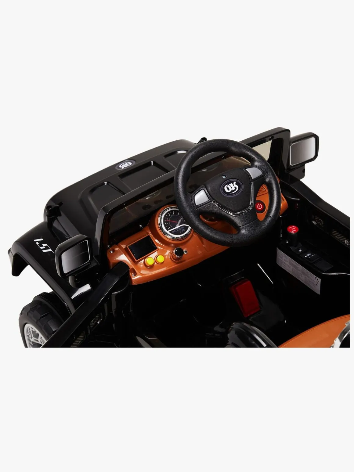 Bilen startes med et tryk på en knap — tryk på speederen og kør en tur! Når du slipper speederen, bremser bilen automatisk. På rattet er der to knapper, der kan aktivere hornet! Brug gearstangen til at vælge hastighed og om du vil køre frem eller bakke. Elbilen har fungerende for- og baglygter og en MP3-indgang, så du kan lytte til musik mens du kører. En garanteret fantastisk køreoplevelse!