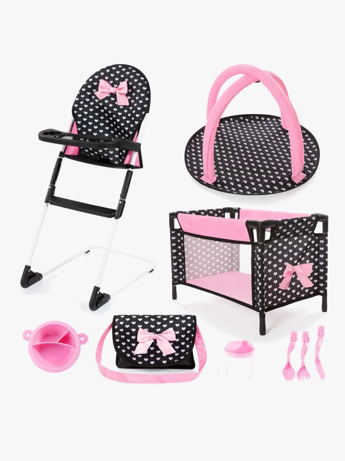 – Indeholder: 1 weekendseng, 1 dukke høj stol, 1 taske, 1 tallerken, 1 kop, 3 bestik.