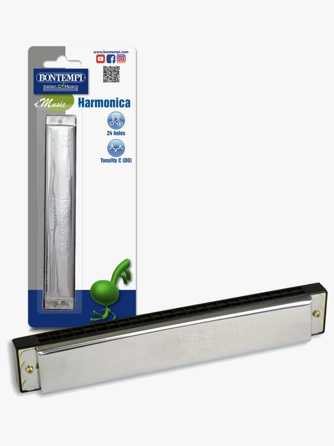 – Blæs i mundharmonikaen og spil forskellige toner.