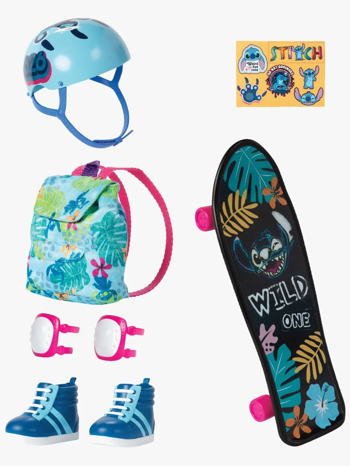 – Indeholder: 1 skateboard, 1 hjelm, 2 sko, 2 knæbeskyttere, 1 taske, 1 klistermærkesæt.
