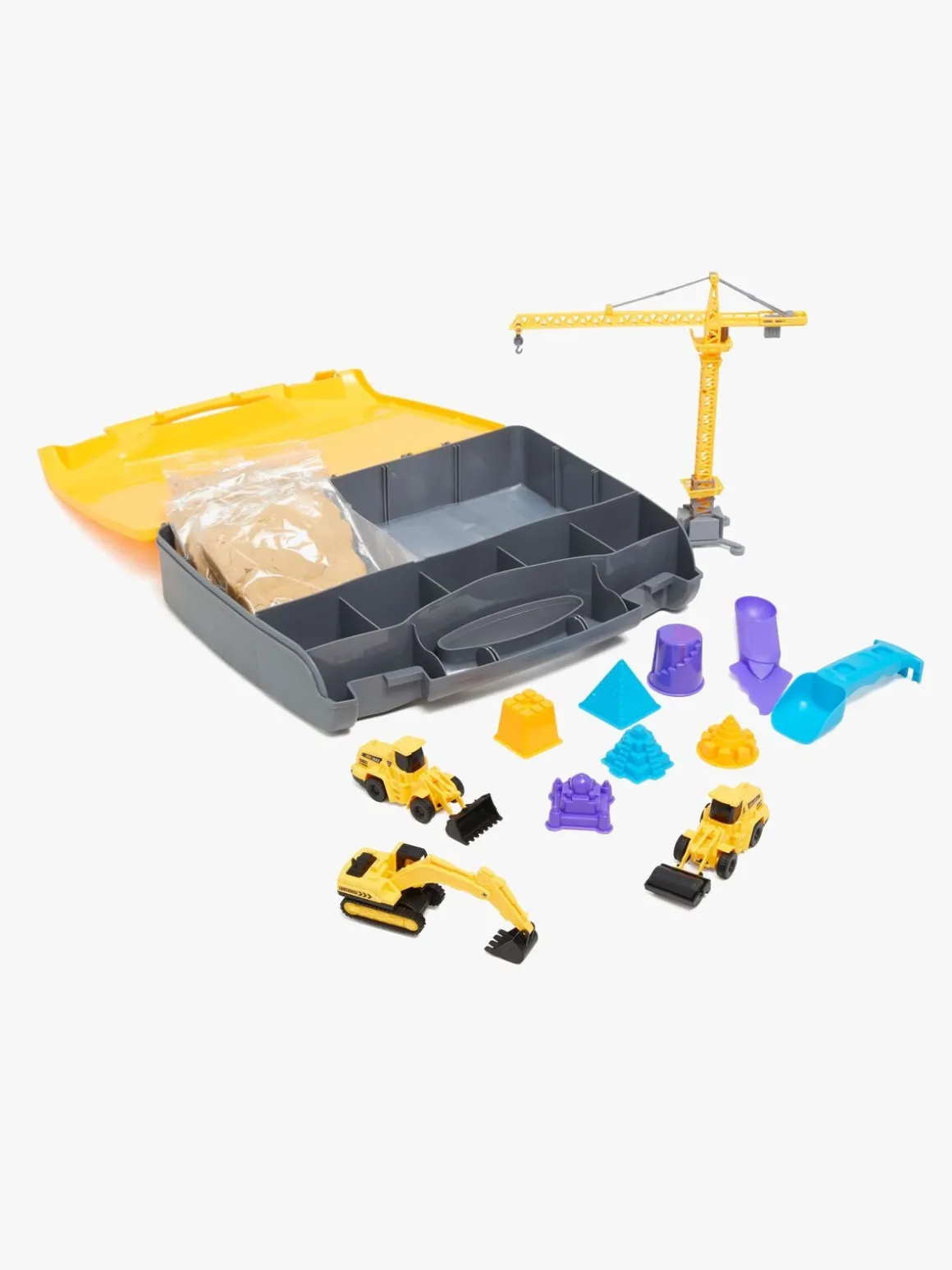 – Indeholder: 1000 g legesand, en løftekran, tre gravemaskiner, en skovl, en kniv og seks sandforme.