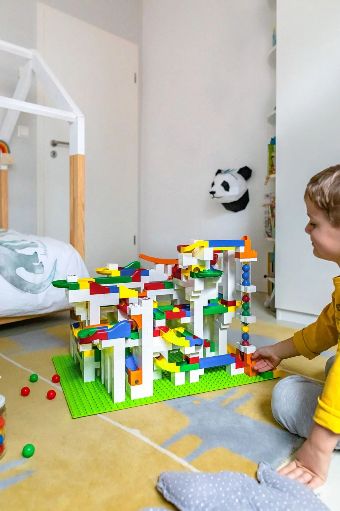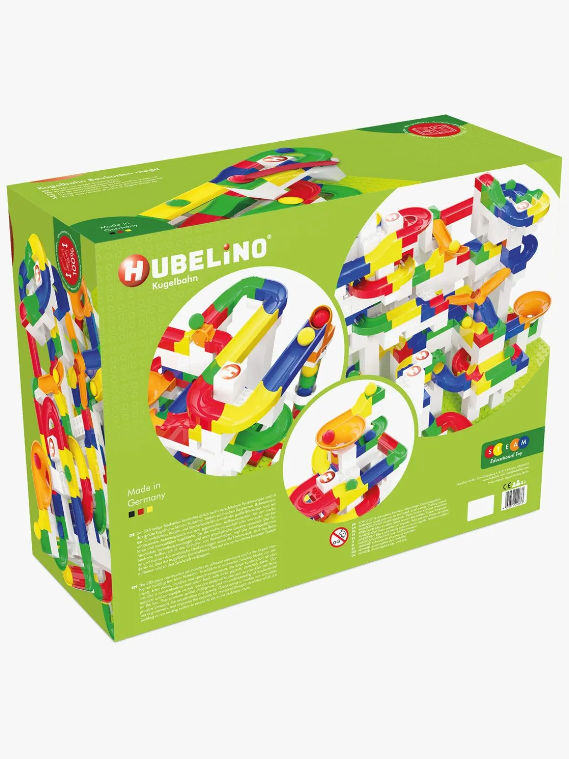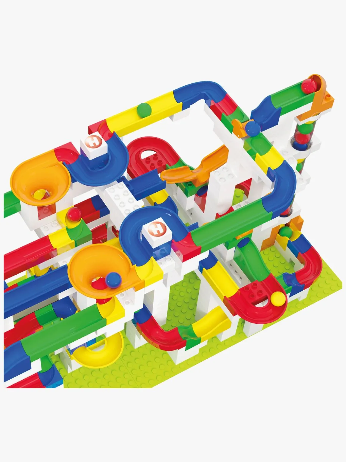 – Indeholder: 162 baneelementer, 377 byggeklodser, 20 konstruktionselementer, 26 kugler, 1 instruktionsbog.