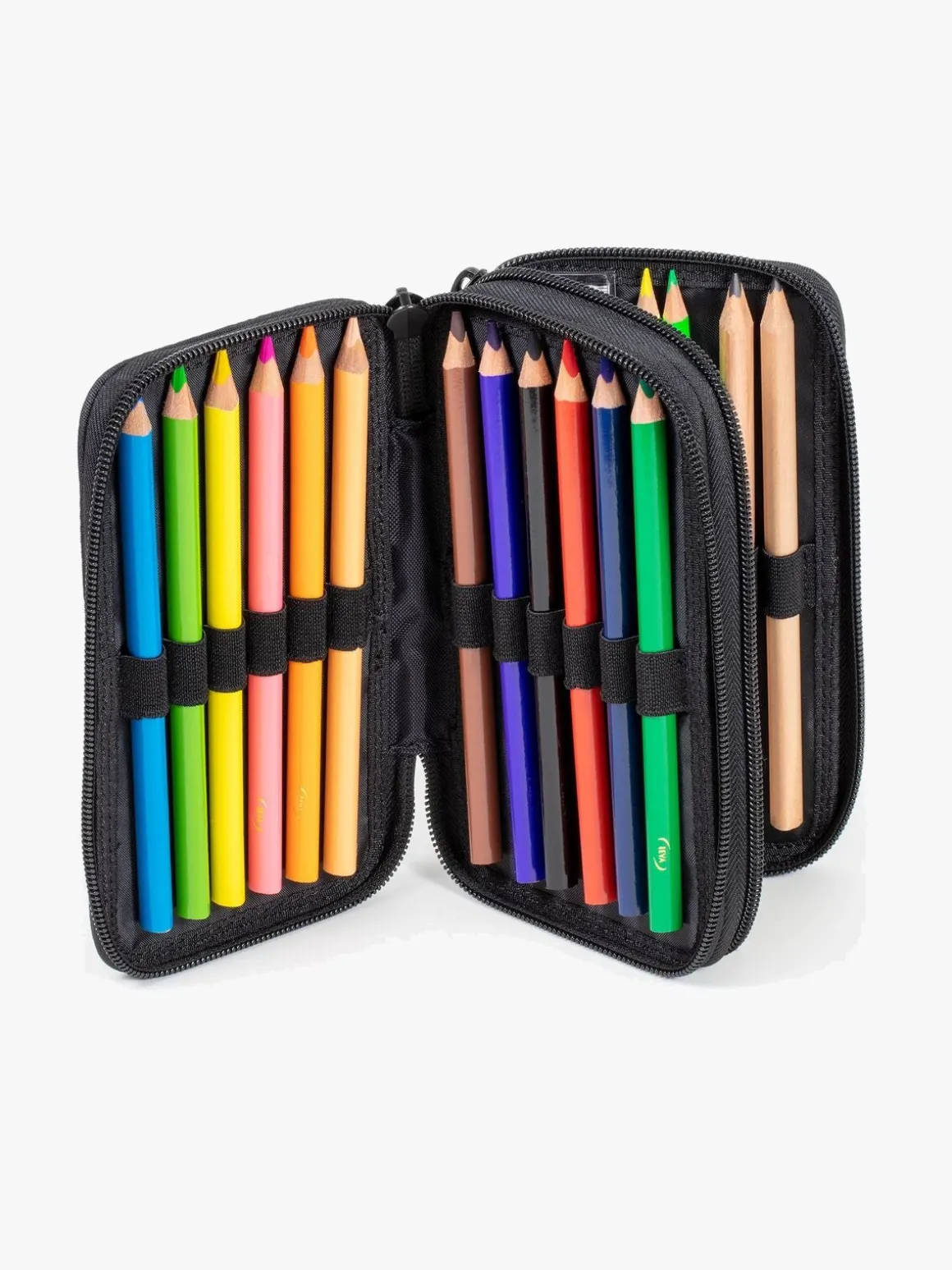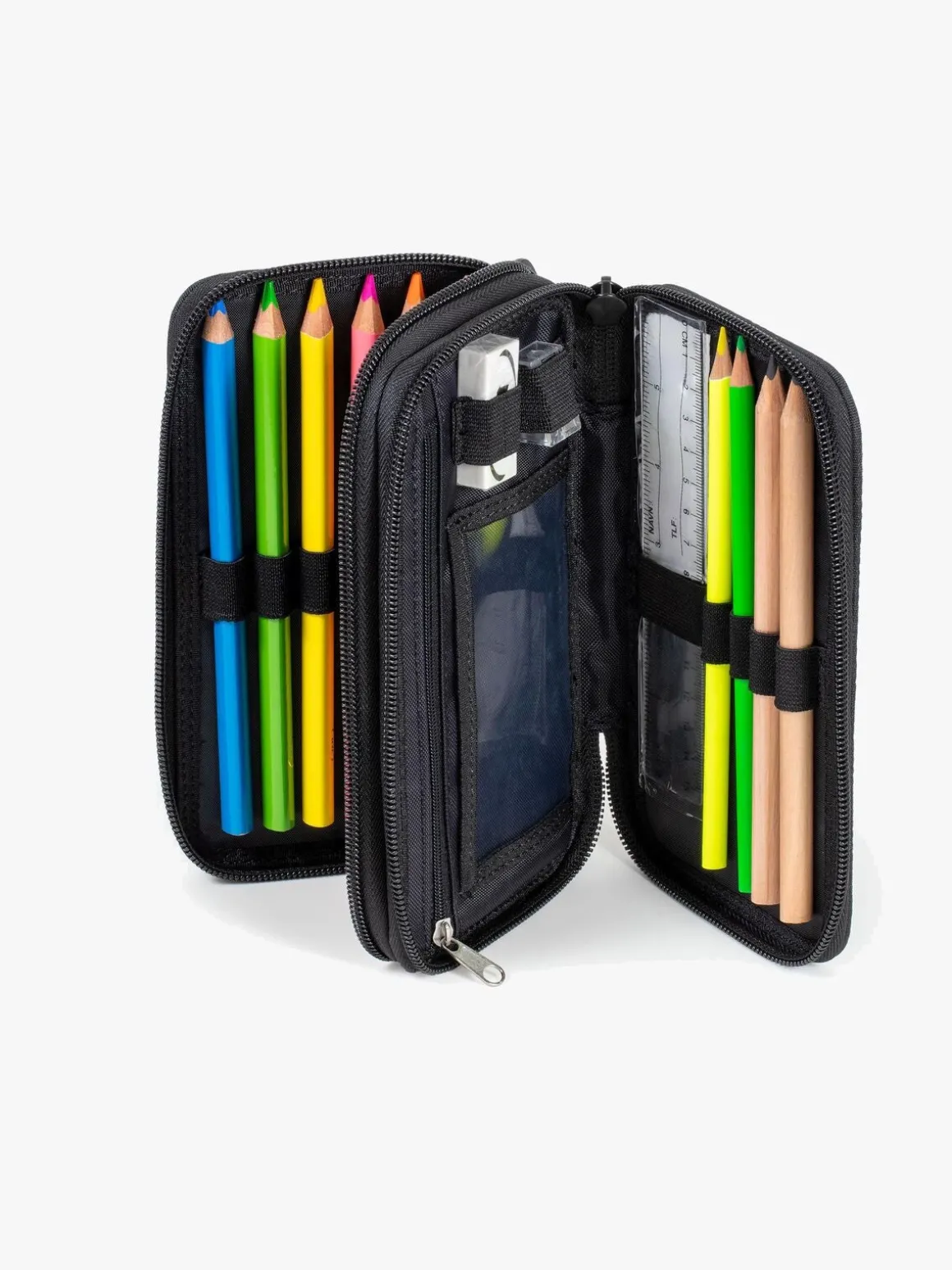 – Indeholder: 12 farveblyanter, 2 blyanter, 1 viskelæder, 1 lineal, 1 blyantspidser, 2 neonkuglepenne.