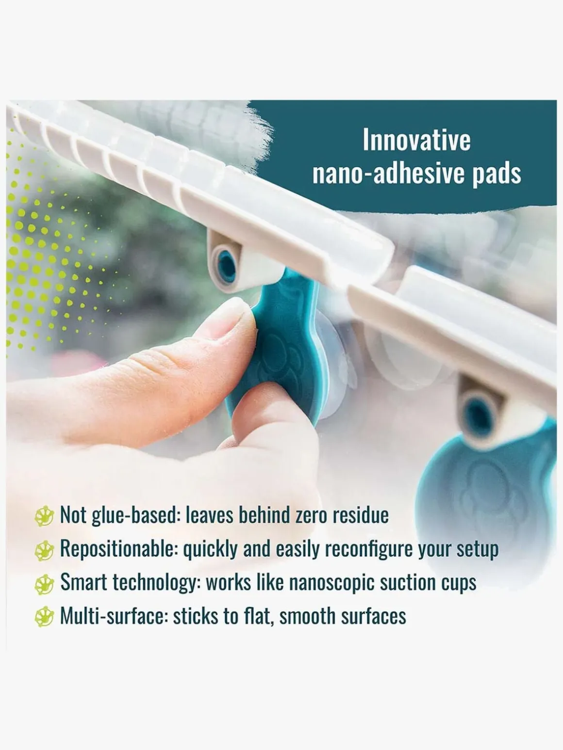 – Enkel montering med selvklæbende puder.