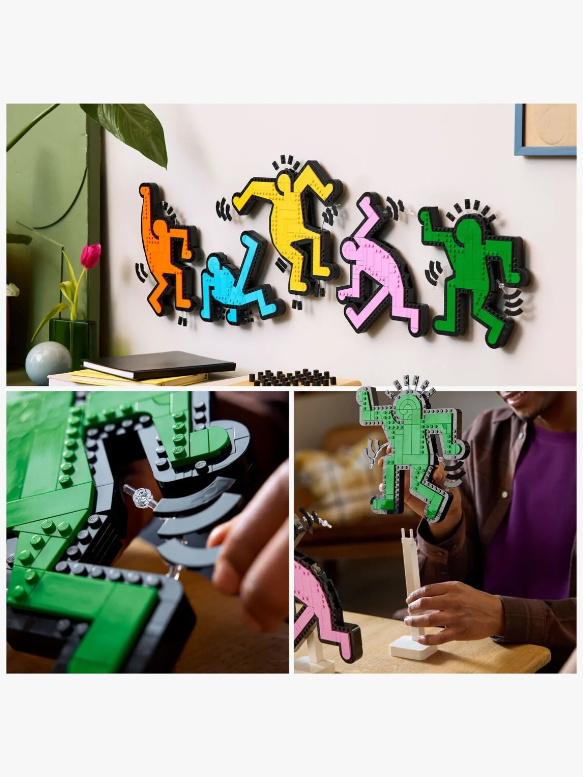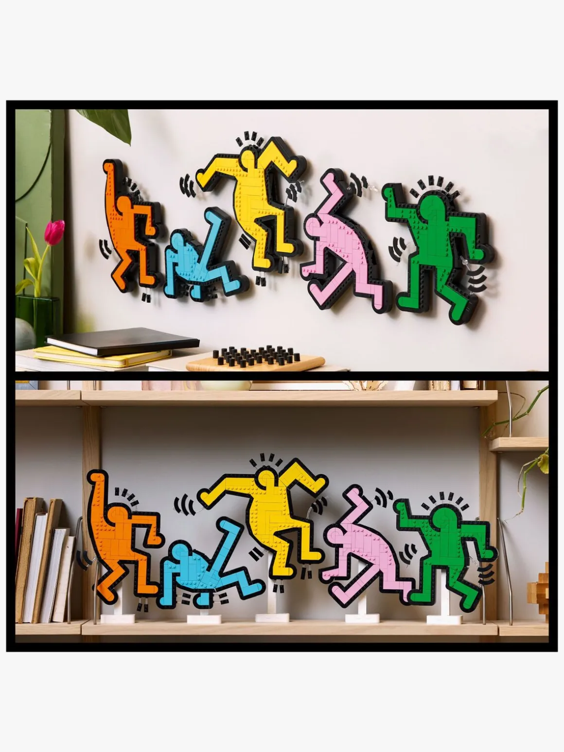 Når det rammeløse LEGO Keith Haring-kunstværk er bygget, har du 2 udstillingsmuligheder og kan enten hænge det på en væg eller sætte hver figur på en stand og udstille dem, som du vil – de 5 figurer er separate modeller, så du kan selv vælge rækkefølgen, og hvor mange du vil udstille. Sættet er en særlig gave til dig selv eller en kreativ gaveidé til enhver kunstelsker.