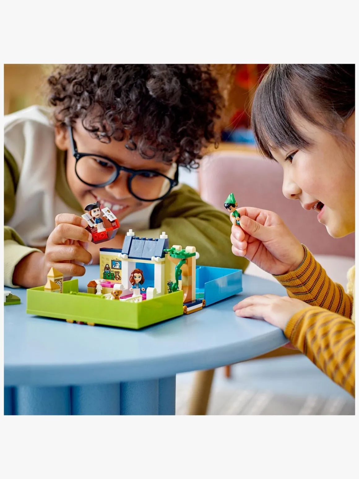 Det kreative sæt får børn hurtigt i gang med at lege med 3 LEGO mikrodukkefigurer – Peter Pan, Wendy og kaptajn Klo – samt en LEGO hundefigur af Nana. Eventyrbogen gør det sjovt for børn at være med på den hotteste trend.