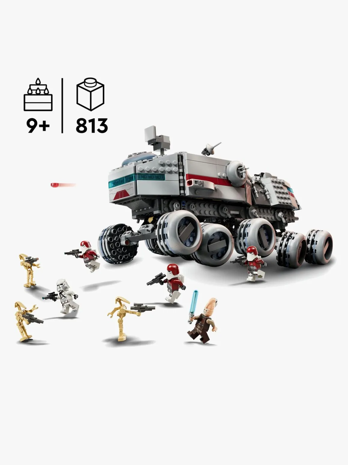 Gør børns kreative oplevelse endnu sjovere med LEGO Builder appen, hvor de kan zoome ind på og dreje en digital 3D-version af Star Wars køretøjet, mens de bygger. Byggesættet indeholder 813 elementer.