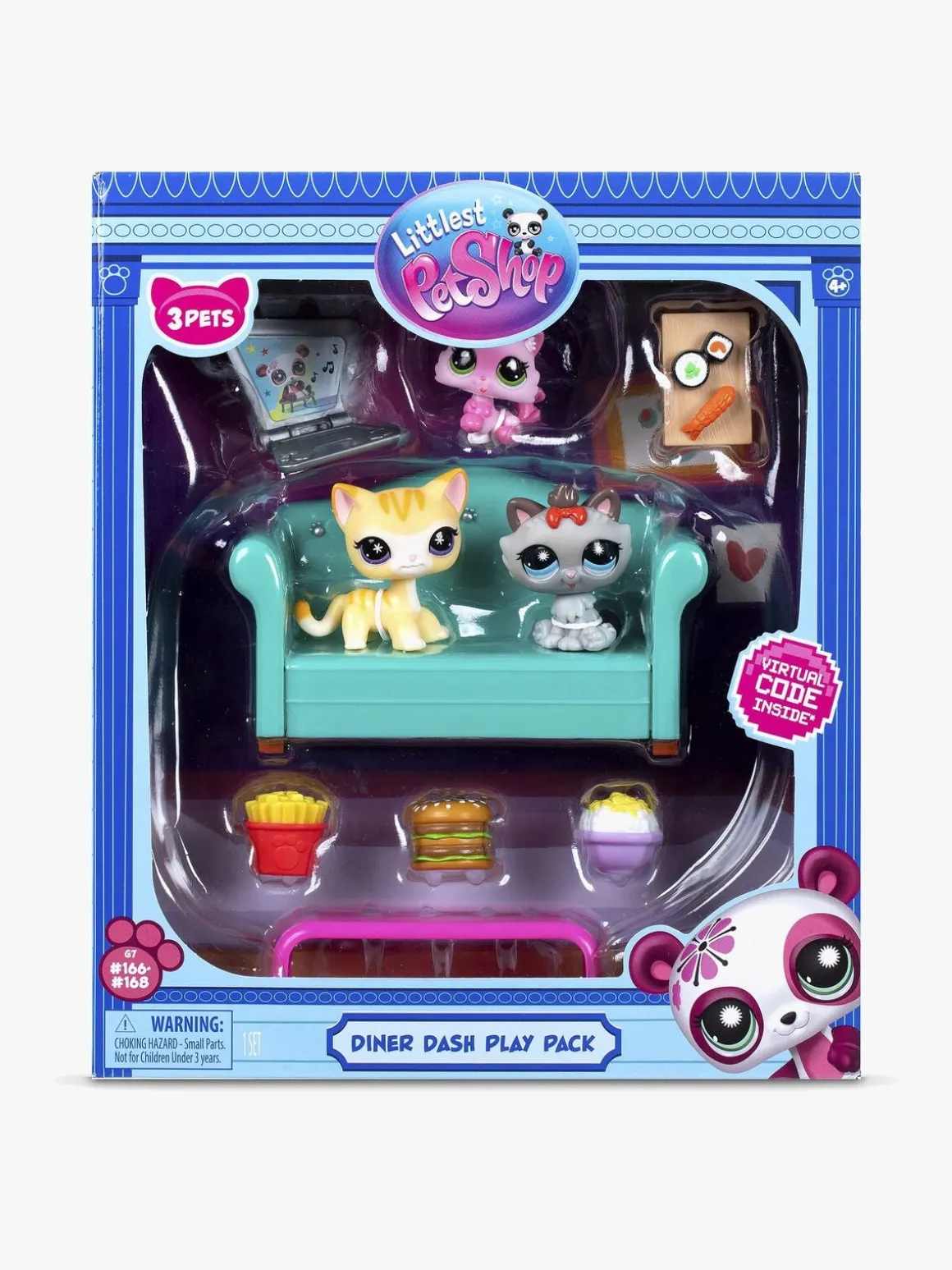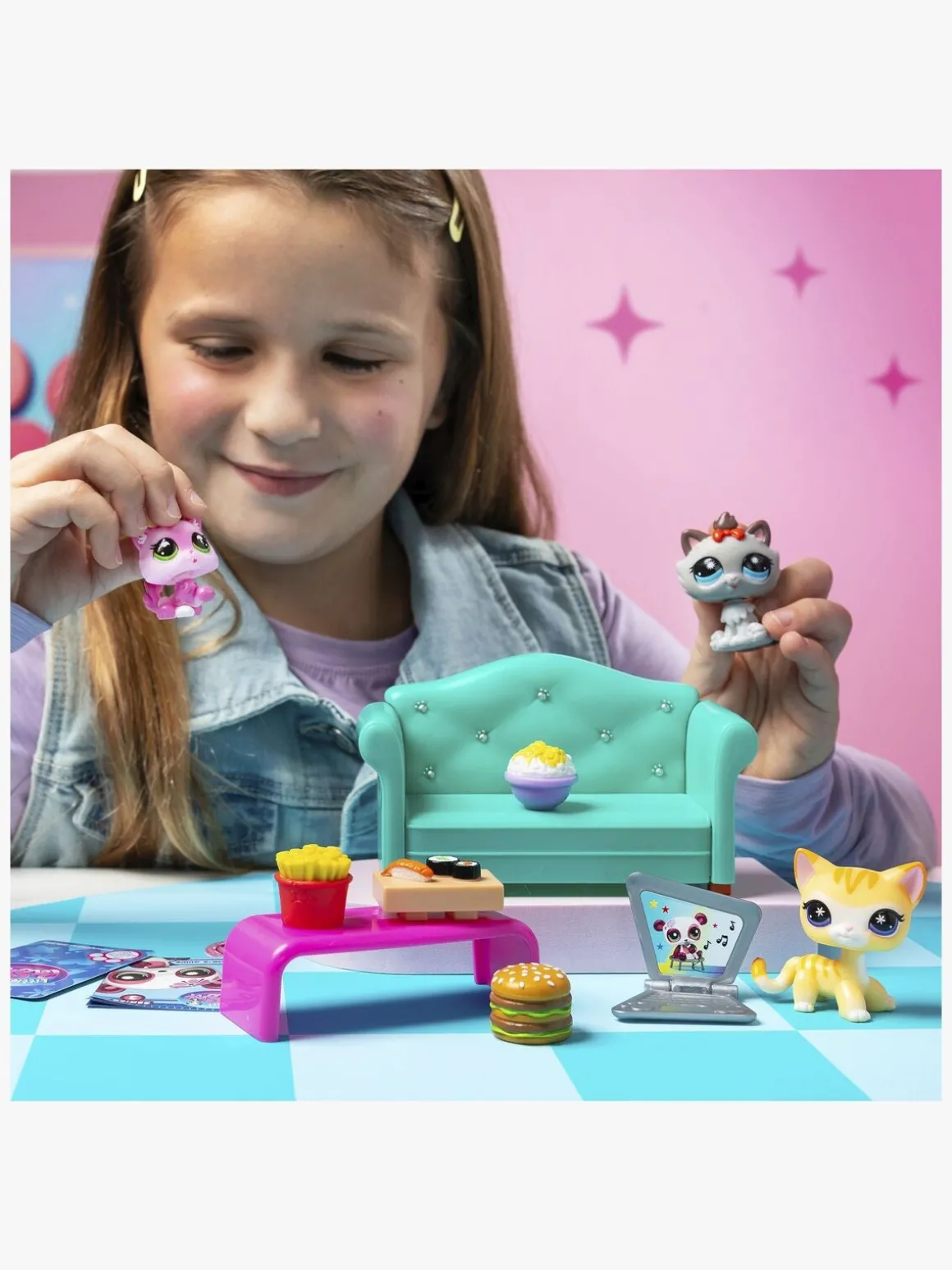 – Indeholder: 3 Littlest Pet Shop-figurer, 6 tilbehør, 1 samlekort, 1 virtuel kode.