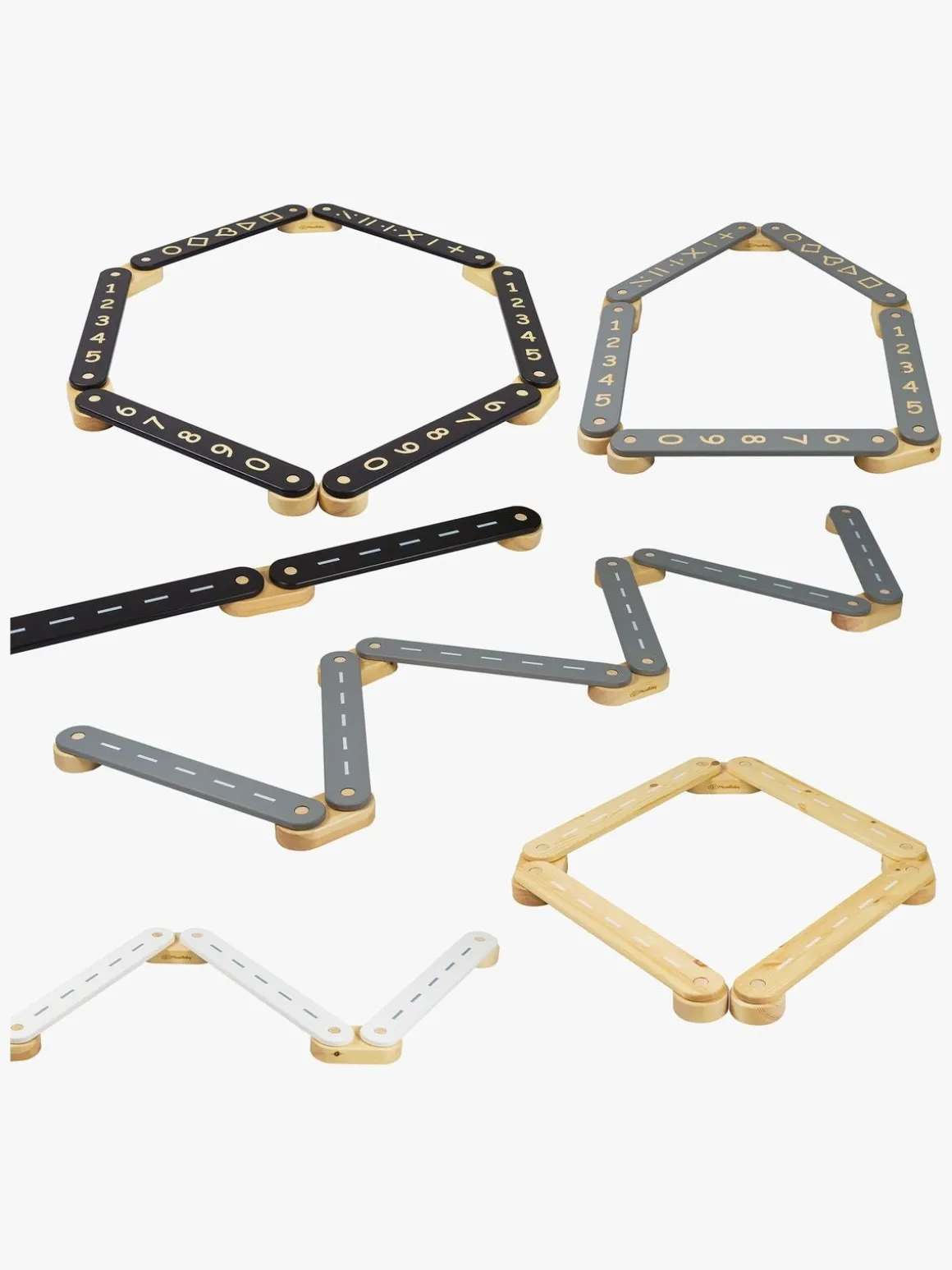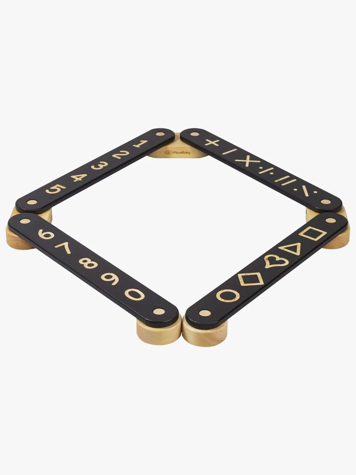 – Dekoreret med geometriske figurer og matematiske tegn.