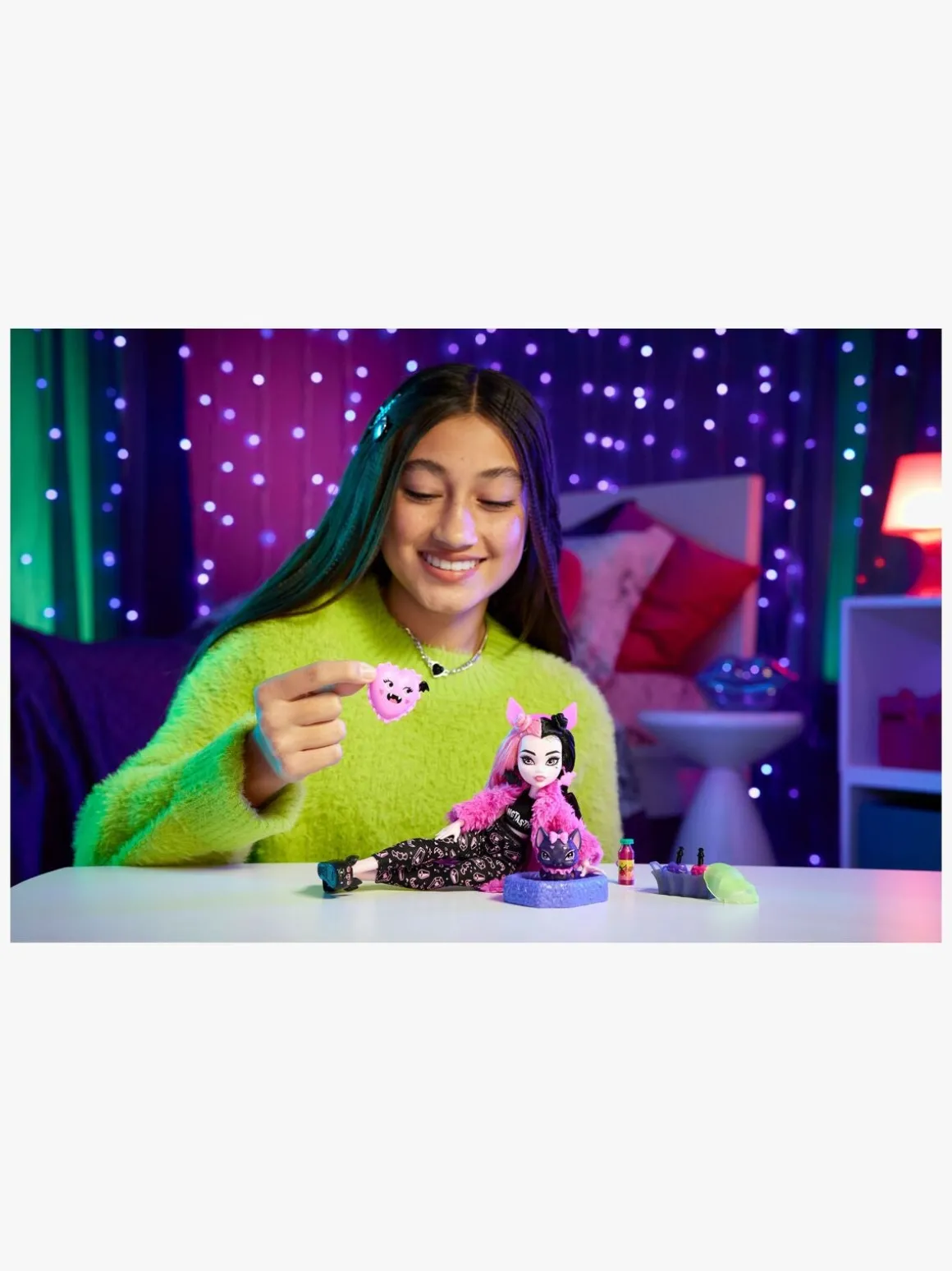 – Indeholder: 1 dukke, 1 kæledyr, 1 telefon, 1 dyreseng, 1 pude, 1 drink, 1 spillekonsol, 1 højttaler.