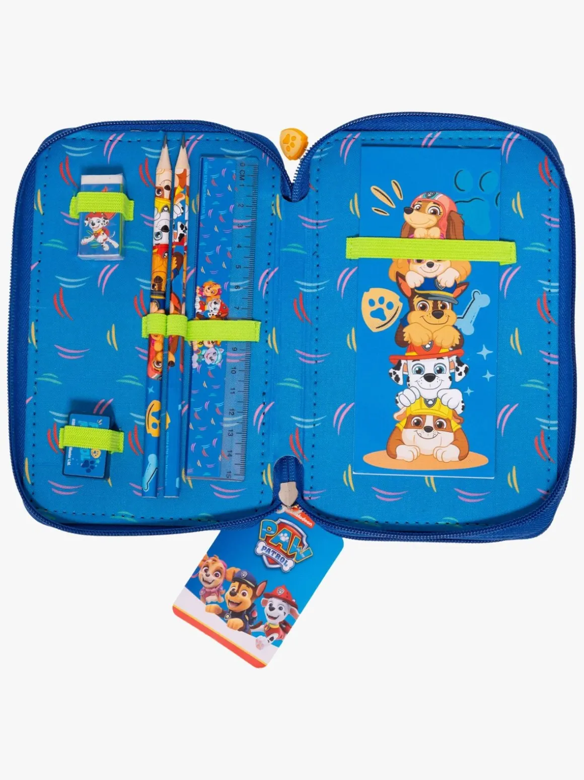 – Indeholder: 1 penalhus, 16 farveblyanter, 1 notesblok, 1 viskelæder, 1 blyantspidser, 1 lineal, 2 blyanter.