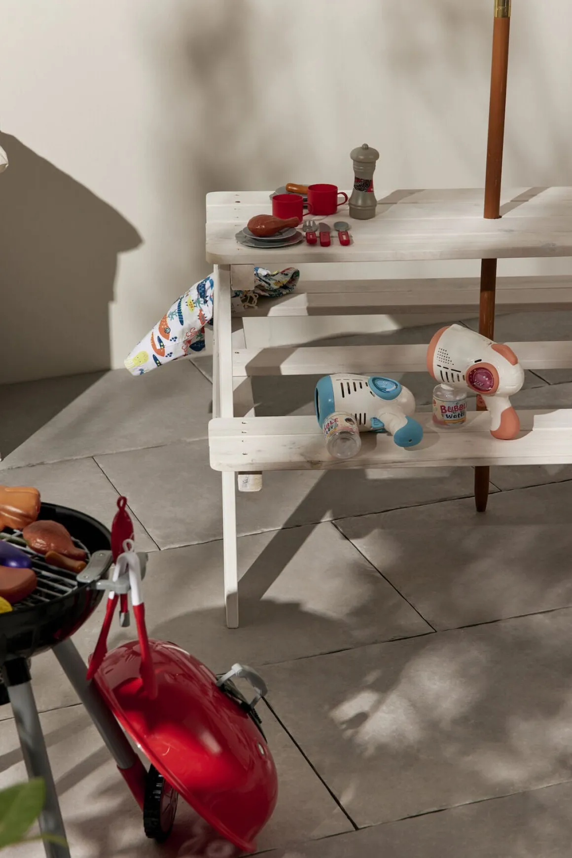 – Indeholder en sæbeboblepistol og en sæbebobleflaske.