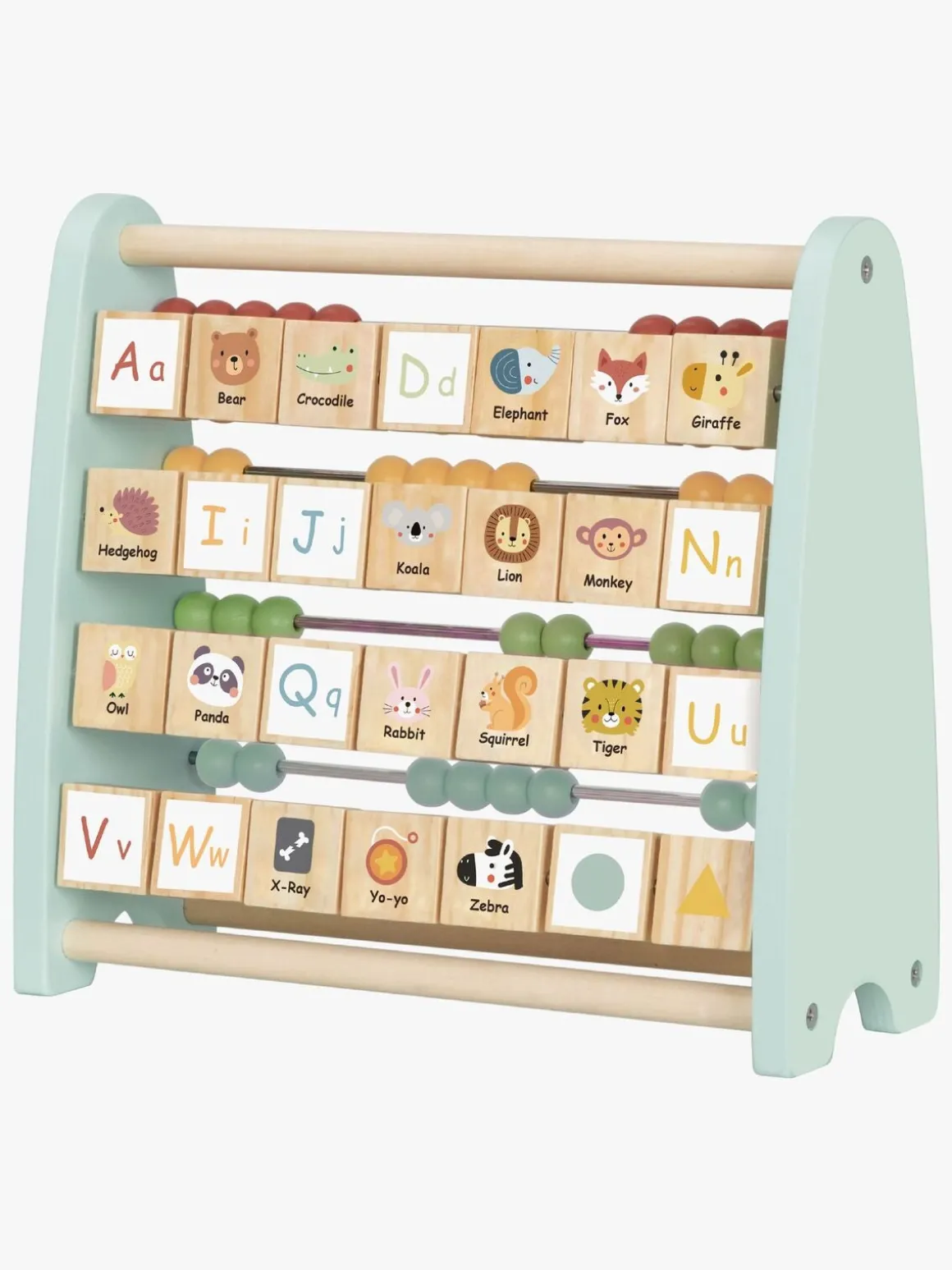 – Unik alfabetisk kugleramme med klodser, der prydes af både små og store bogstaver.