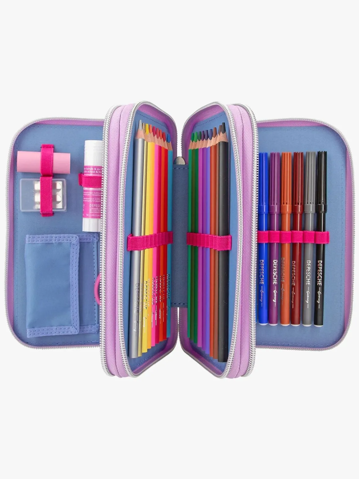 – Indeholder: 1 penalhus, 18 farveblyanter, 18 tusser, 2 blyanter, 1 saks, 1 limstift, 1 blyantspidser, 1 lineal, 1 viskelæder.