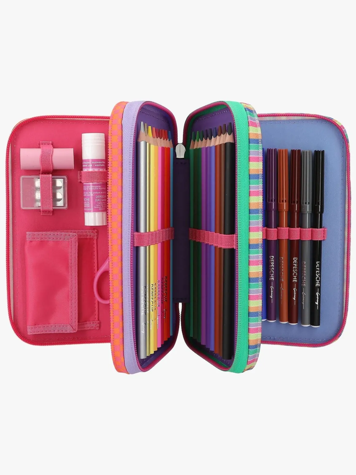 – Indeholder: 1 penalhus, 18 farveblyanter, 18 tusser, 2 blyanter, 1 saks, 1 limstift, 1 blyantspidser, 1 lineal, 1 viskelæder.