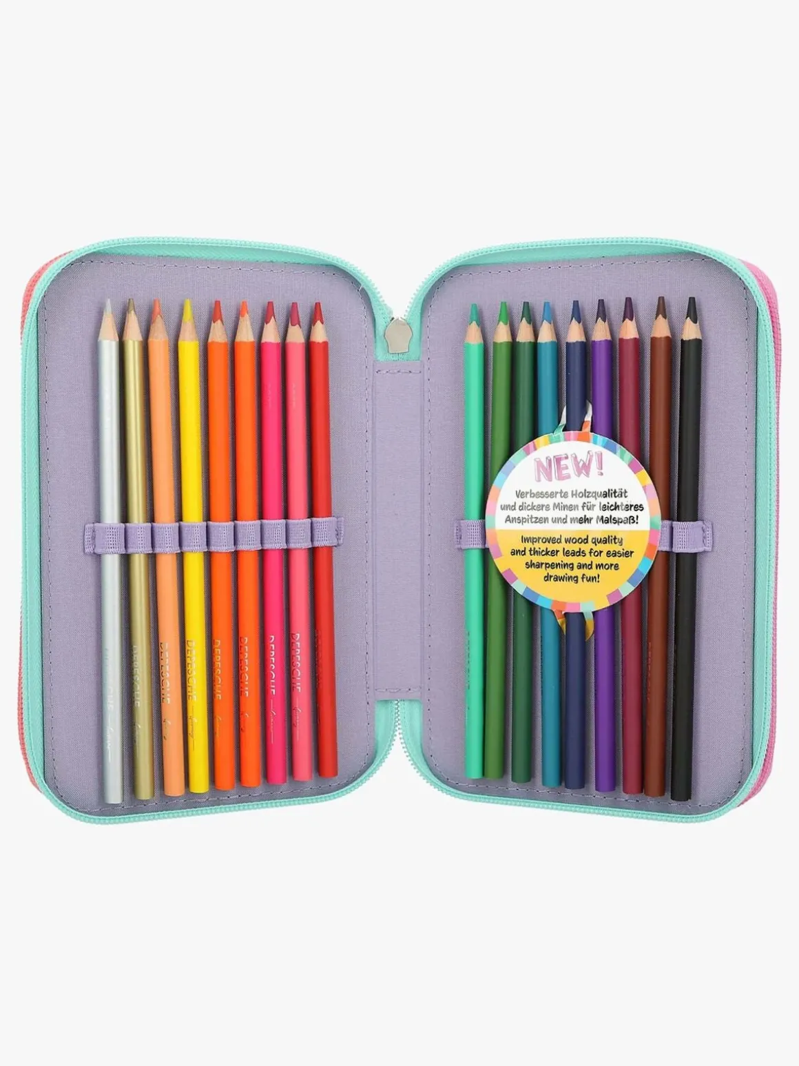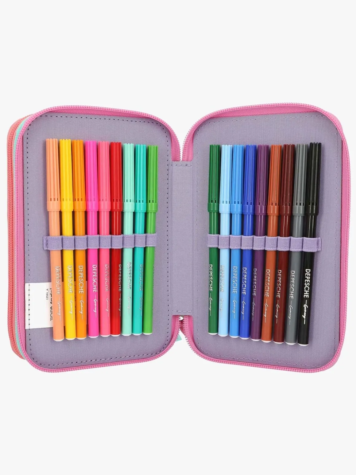 – Indeholder: 18 farveblyanter, 18 filttusser, 1 viskelæder, 2 blyanter, 1 saks, 1 limstift, 1 lineal, 1 blyantspidser.
