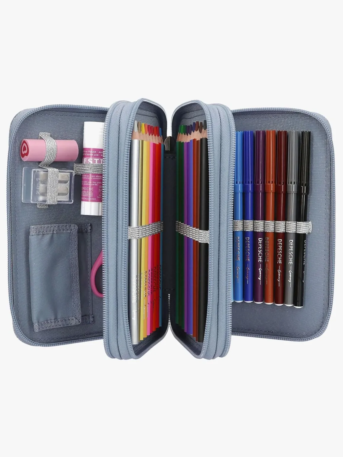 – Indeholder: 1 penalhus, 18 farveblyanter, 18 tusser, 2 blyanter, 1 saks, 1 limstift, 1 blyantspidser, 1 lineal, 1 viskelæder.