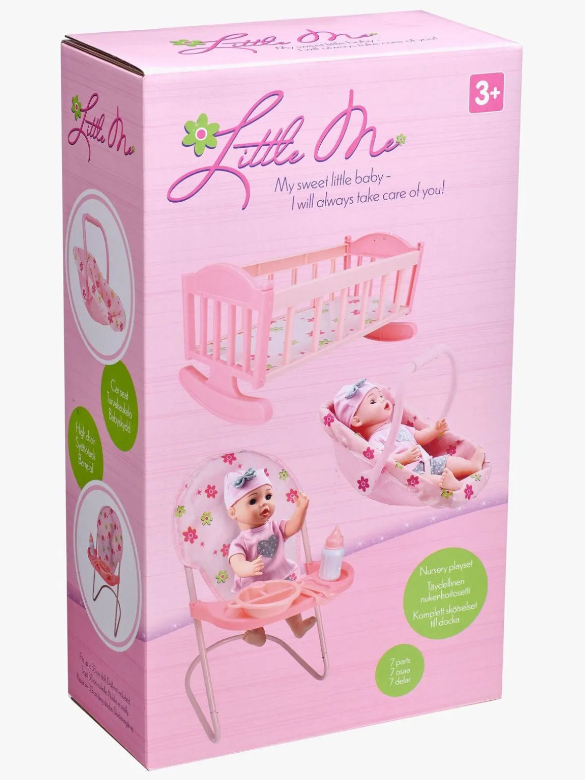 – Indeholder: 1 seng, 1 stol, 1 babyautostol, 1 flaske, 1 tallerken, 1 ske, 1 gaffel.