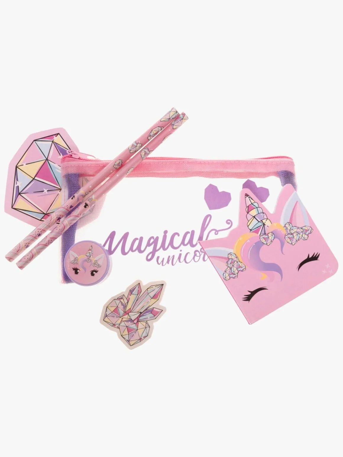 – Indeholder: 1 farveblyant, 1 klistermærkeark, 1 blyant, 2 viskelædere, 1 notesblok, 1 lille notesblok.