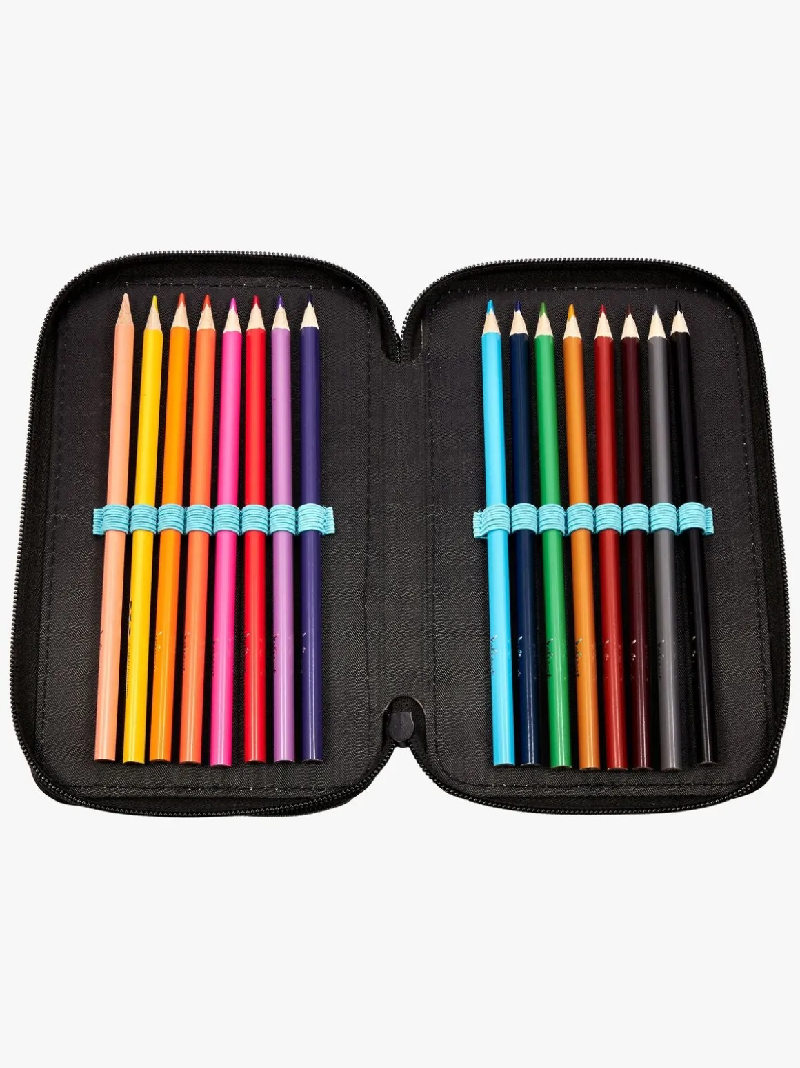 – Indeholder: 1 penalhus, 16 farveblyanter, 1 notesblok, 1 viskelæder, 1 blyantspidser, 1 lineal, 2 blyanter.